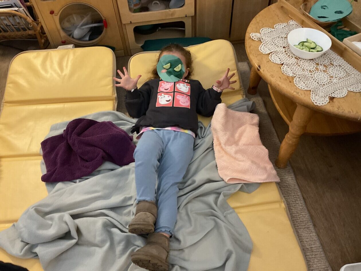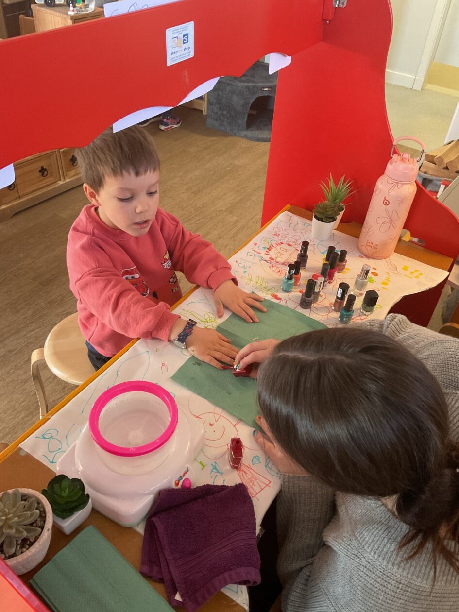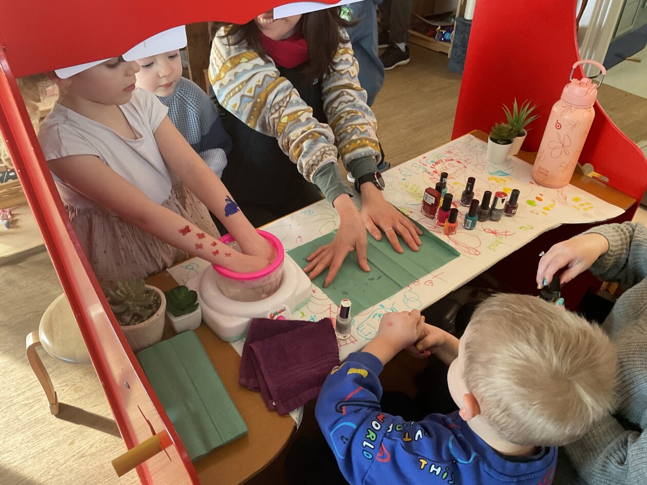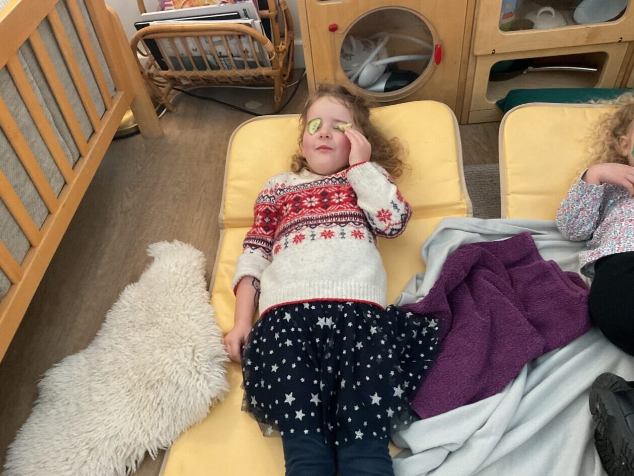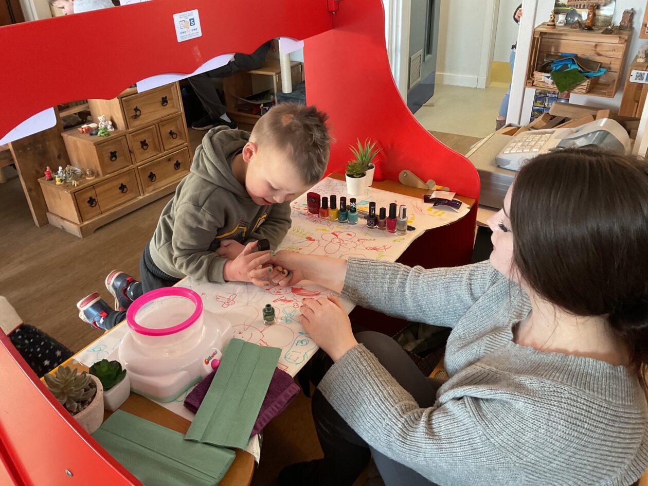 The bairns set about decorating their spa with pictures and signs. They laid out towels, blankets and mats. The bairns phoned to make an appointment for their treatment. When they arrived at the spa, they chose their nail polish colour, a tattoo and they could use the Orbeez hand and nail spa. The spa was a very popular place and there were even some appointments left for the adults!