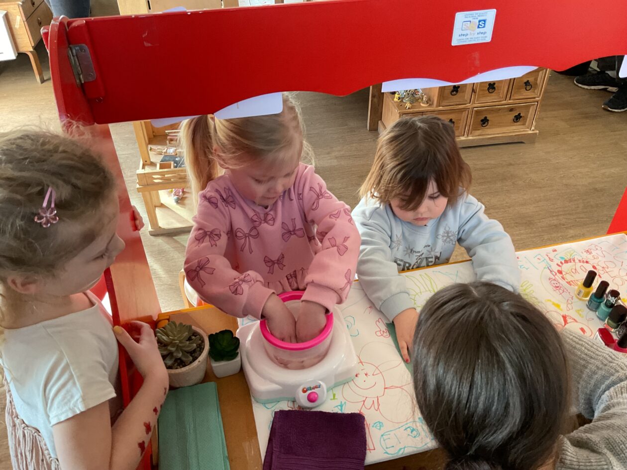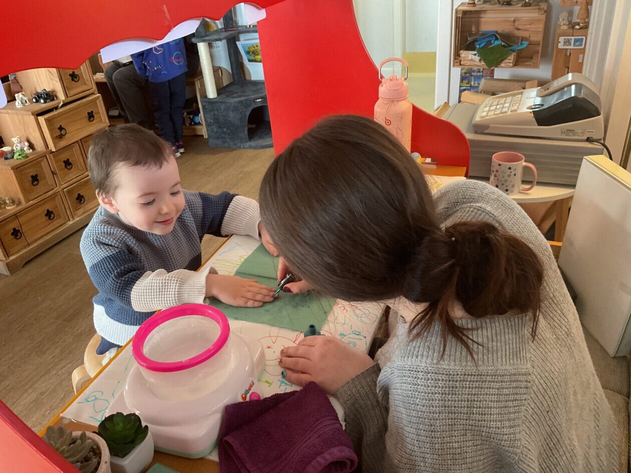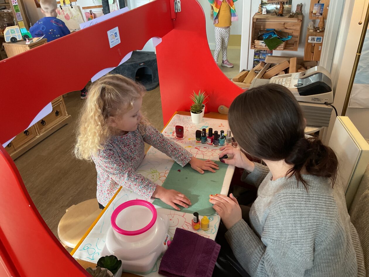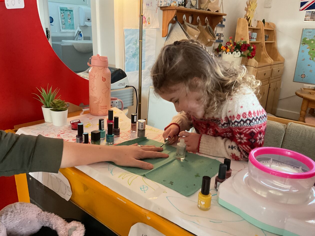 The bairns set about decorating their spa with pictures and signs. They laid out towels, blankets and mats. The bairns phoned to make an appointment for their treatment. When they arrived at the spa, they chose their nail polish colour, a tattoo and they could use the Orbeez hand and nail spa. The spa was a very popular place and there were even some appointments left for the adults!