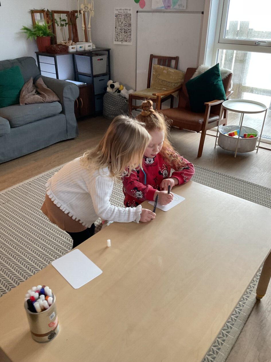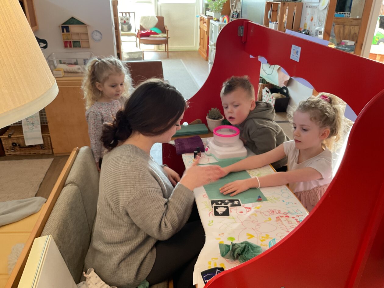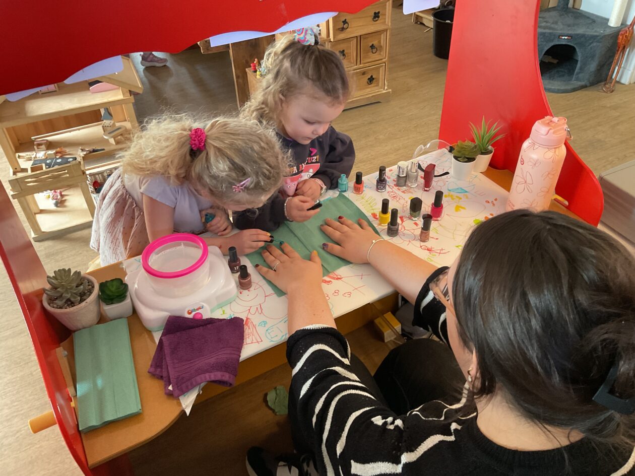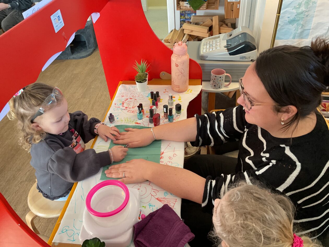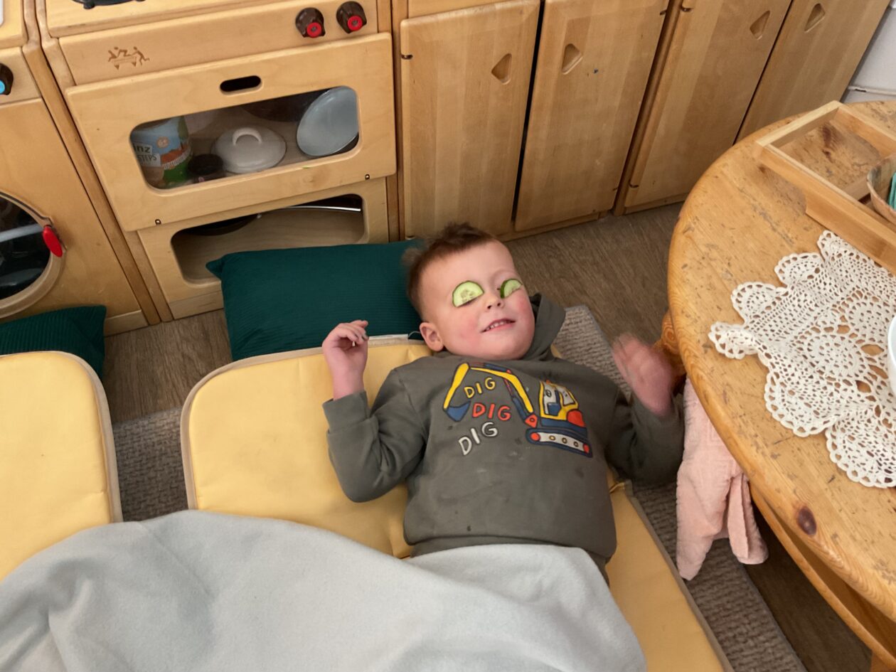 The bairns set about decorating their spa with pictures and signs. They laid out towels, blankets and mats. The bairns phoned to make an appointment for their treatment. When they arrived at the spa, they chose their nail polish colour, a tattoo and they could use the Orbeez hand and nail spa. The spa was a very popular place and there were even some appointments left for the adults!