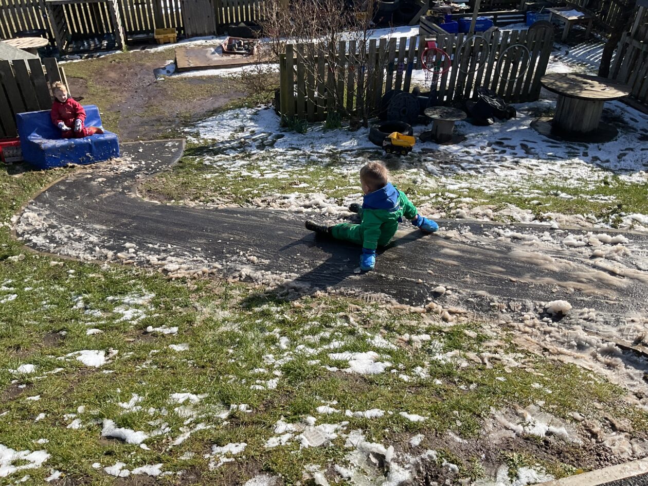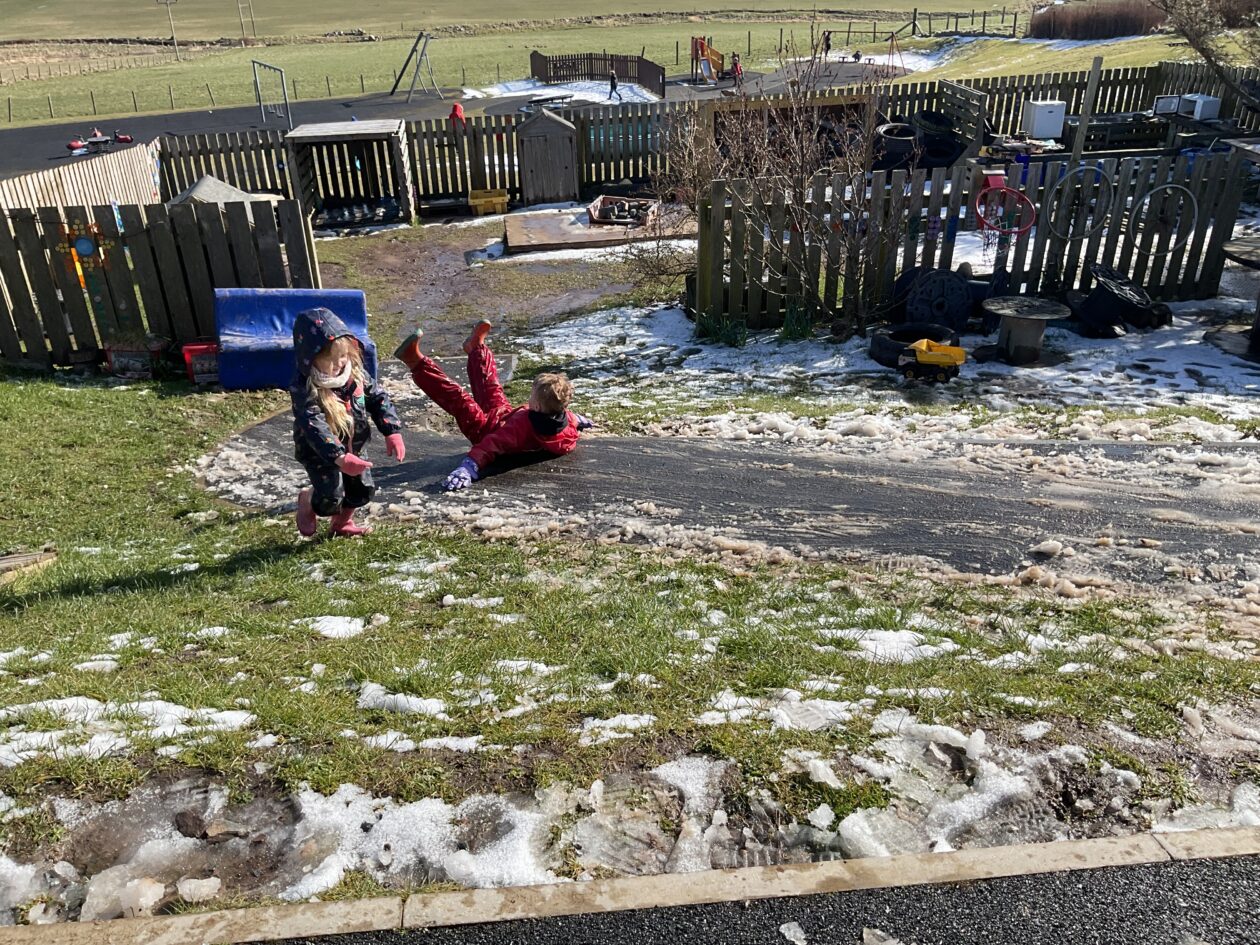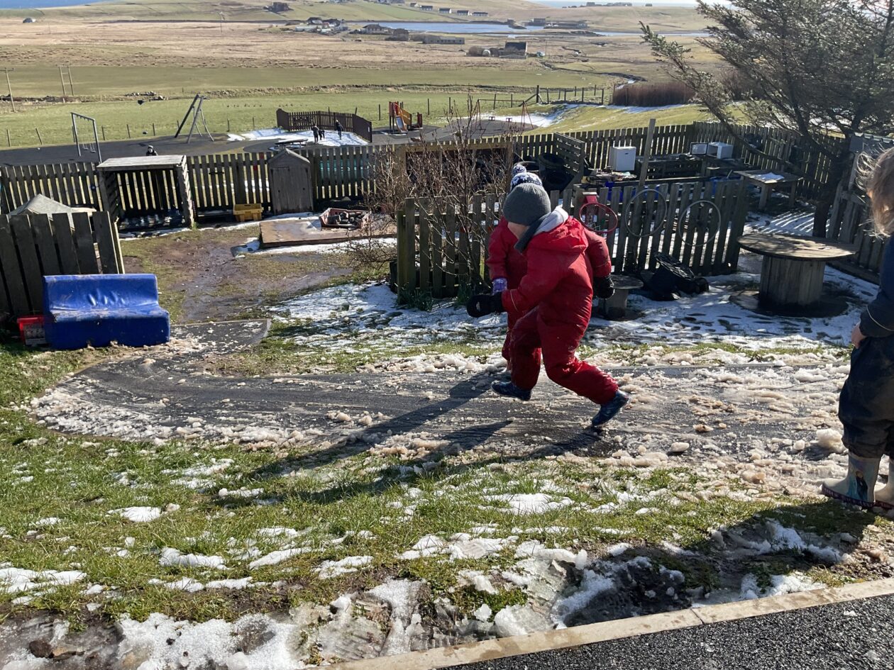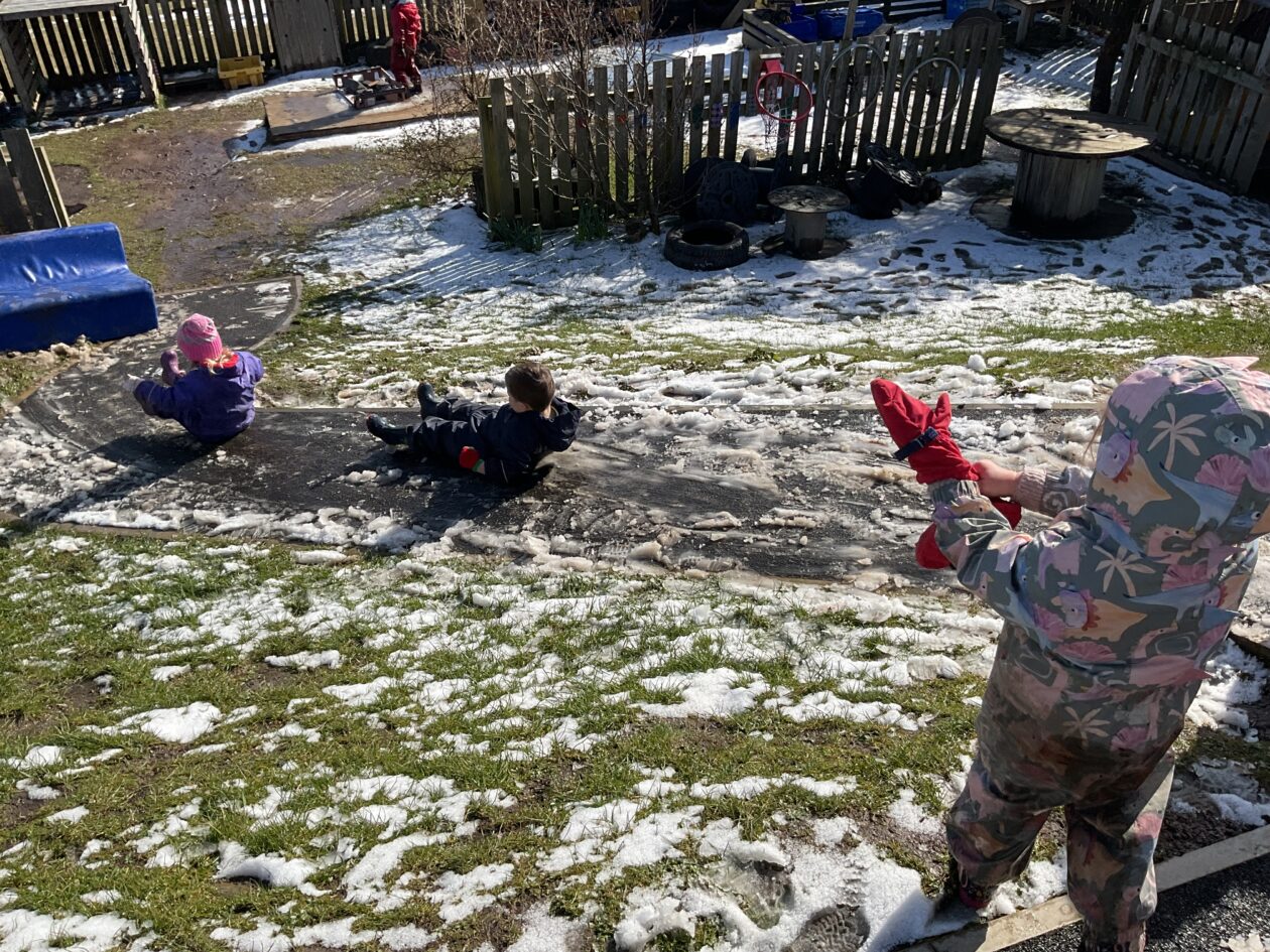 Here is a selection of our play and learning from the remainder of the week. The bairns have been playing team games, building a den in the outdoor room, celebrating a birthday, sliding down the icy path, checking flight paths, measuring carrots and accessing QR codes.