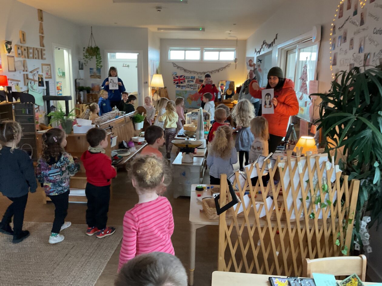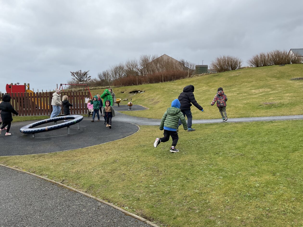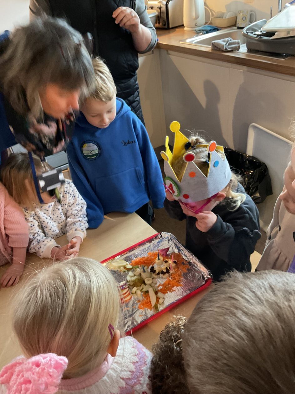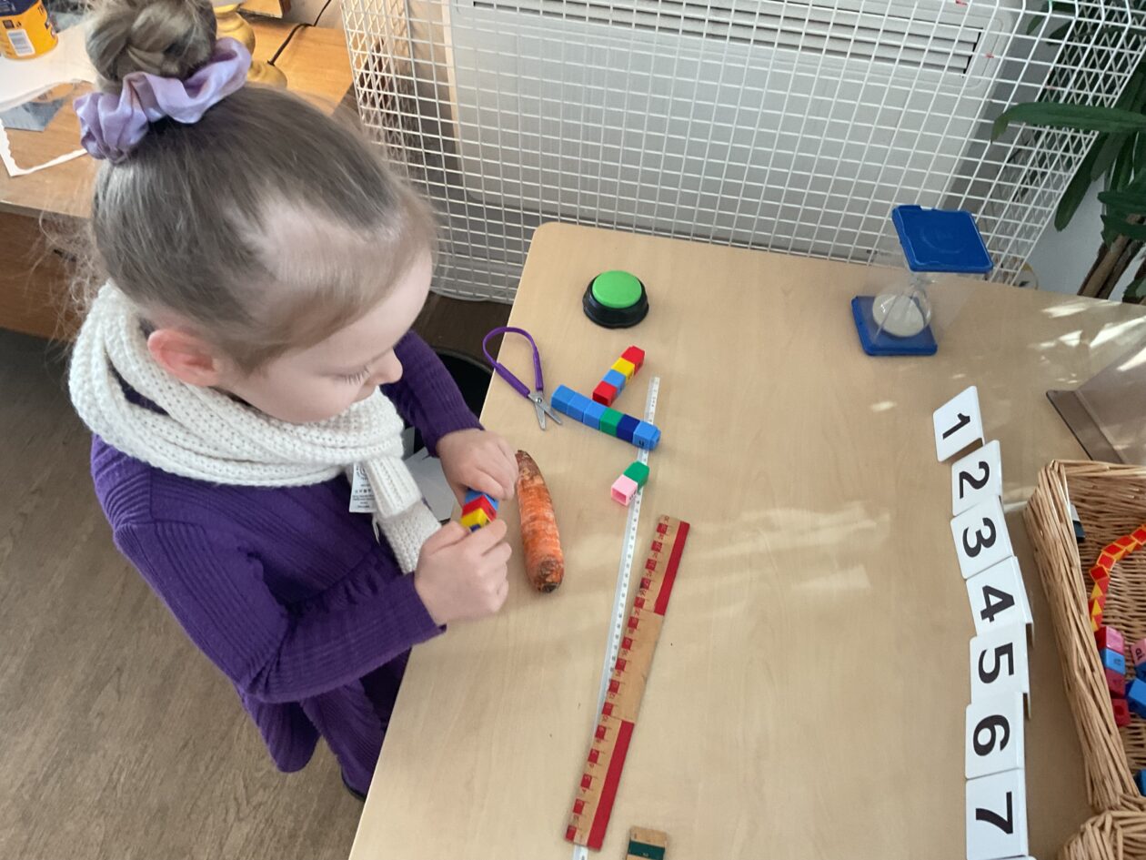 Here is a selection of our play and learning from the remainder of the week. The bairns have been playing team games, building a den in the outdoor room, celebrating a birthday, sliding down the icy path, checking flight paths, measuring carrots and accessing QR codes.