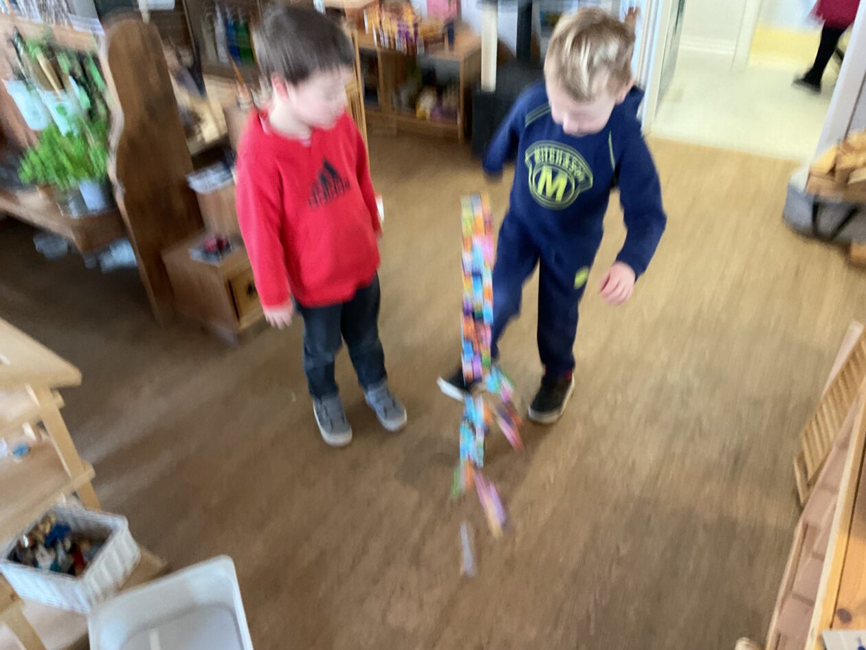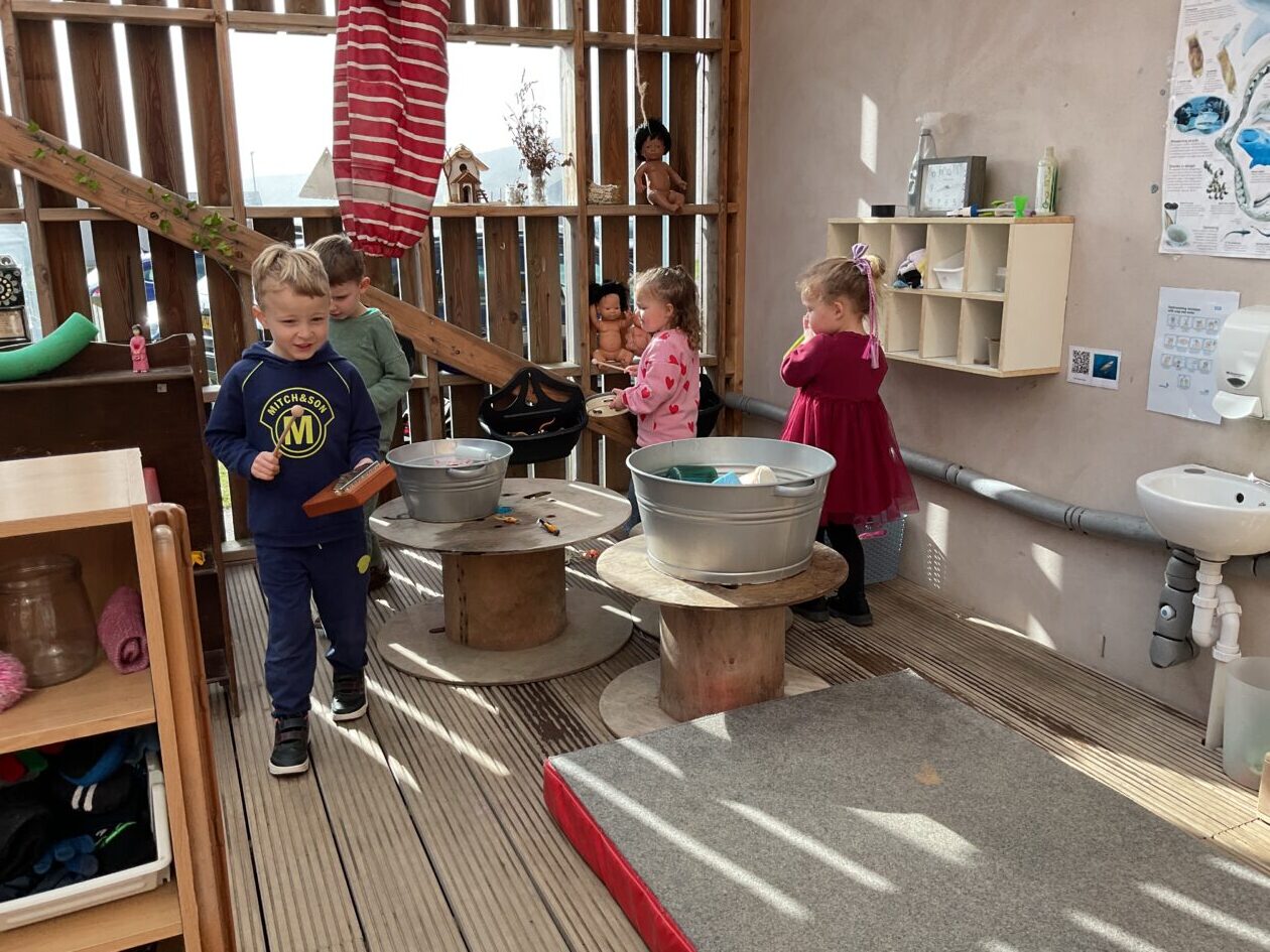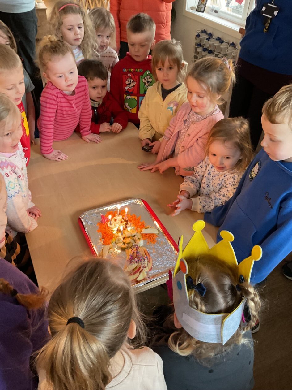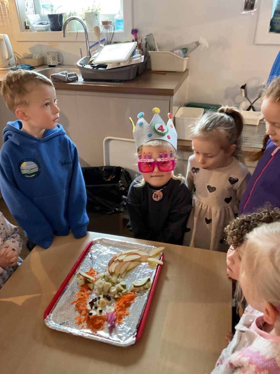 Here is a selection of our play and learning from the remainder of the week. The bairns have been playing team games, building a den in the outdoor room, celebrating a birthday, sliding down the icy path, checking flight paths, measuring carrots and accessing QR codes.