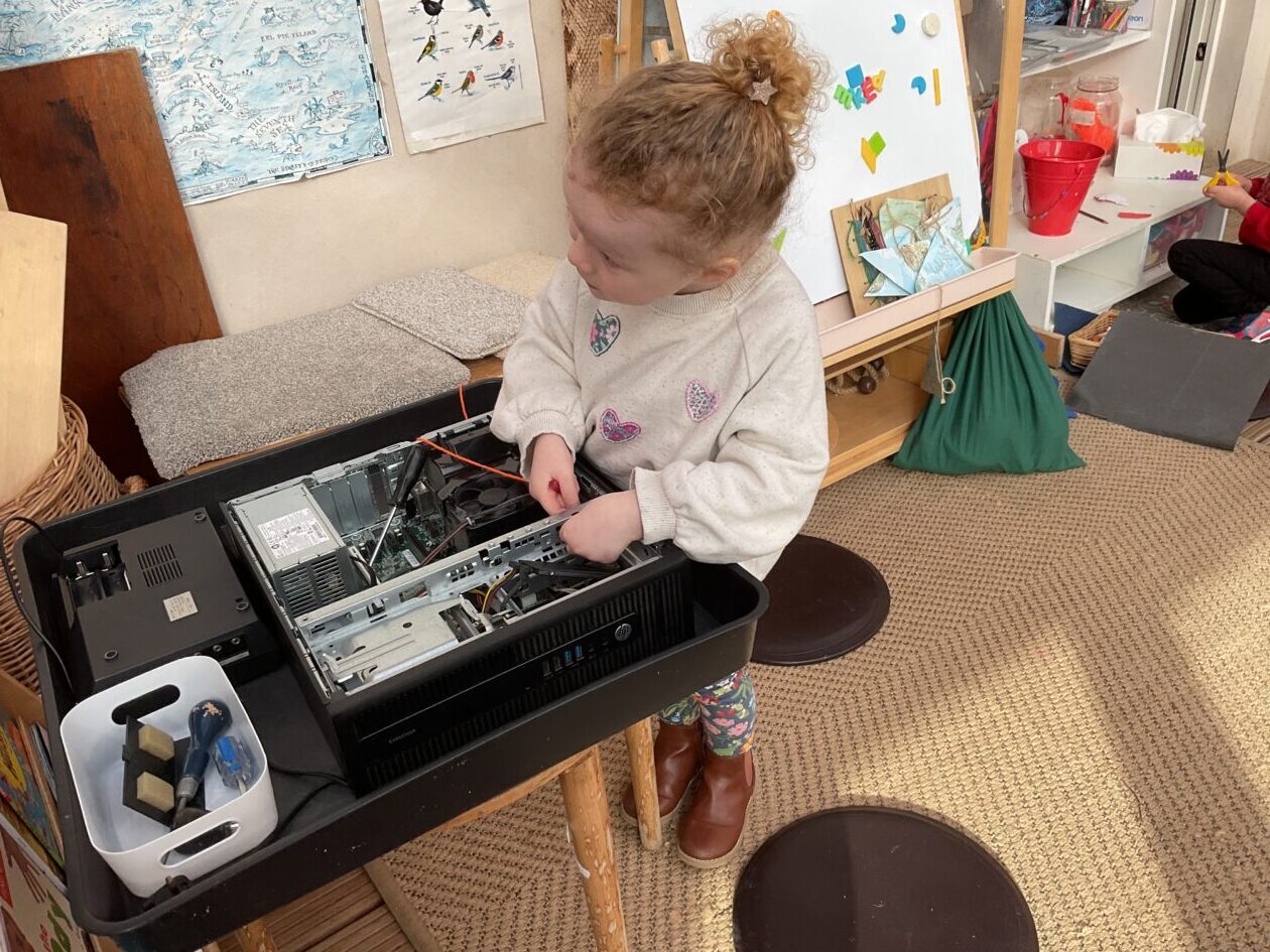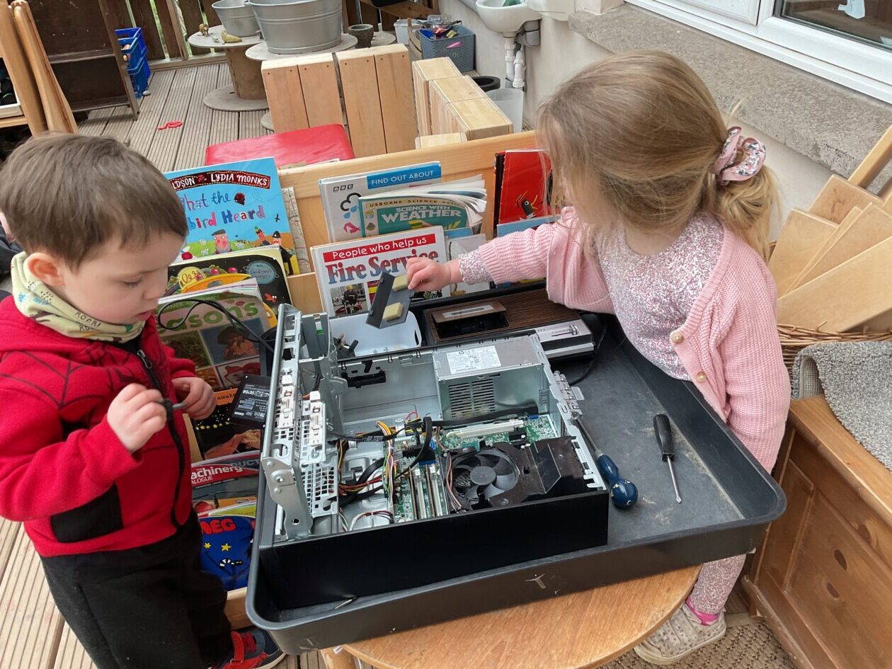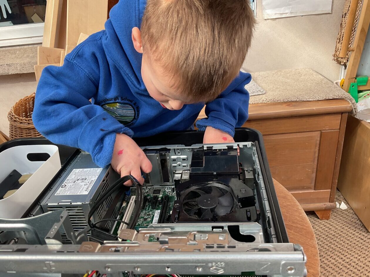We had a generous donation of old hard drives for the bairns to take apart. They used screwdrivers to loosen the screws and find out what was inside. “That’s a fan, see.”