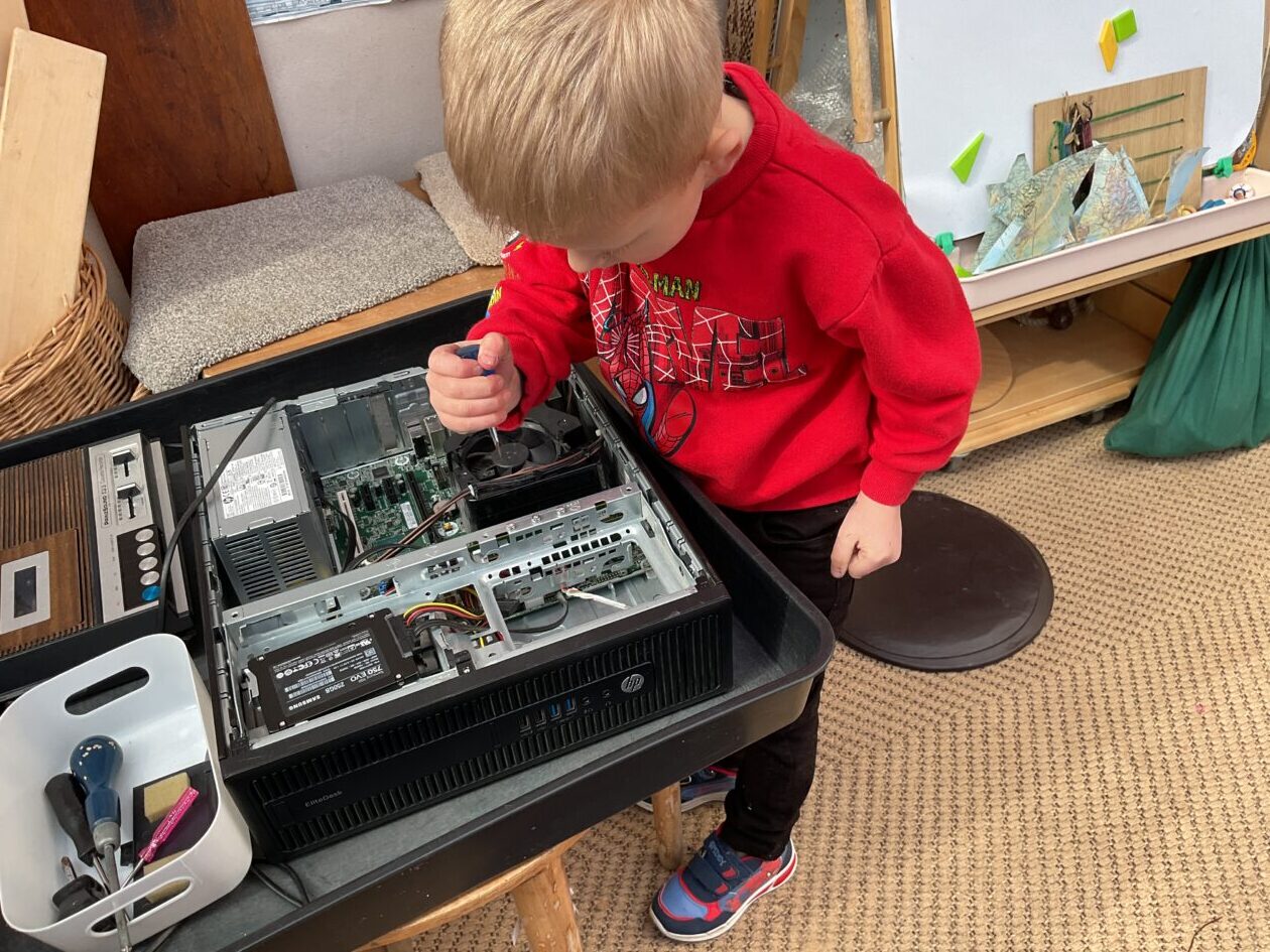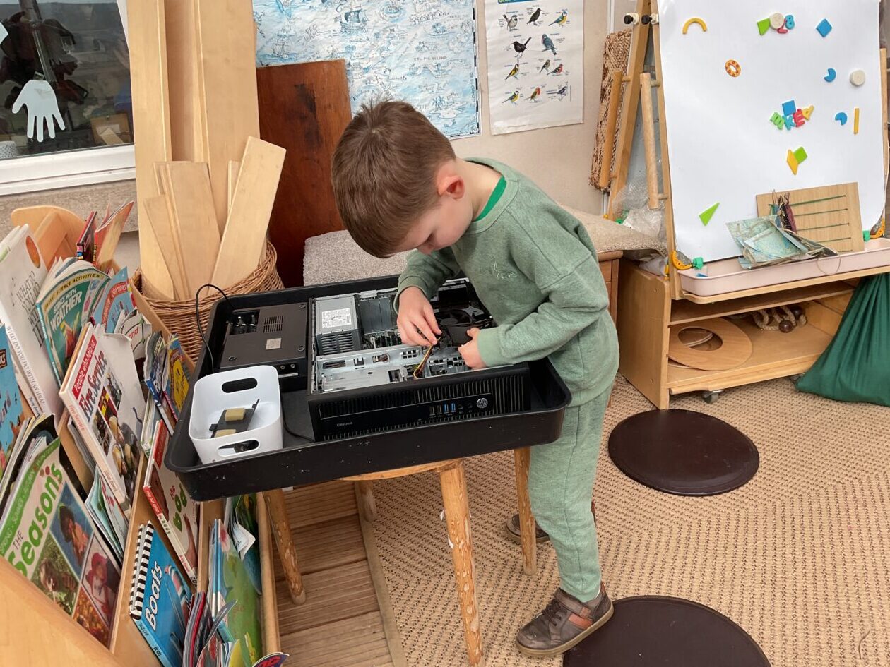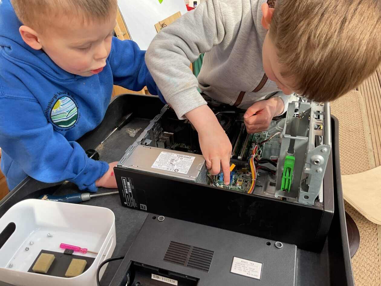 We had a generous donation of old hard drives for the bairns to take apart. They used screwdrivers to loosen the screws and find out what was inside. “That’s a fan, see.”