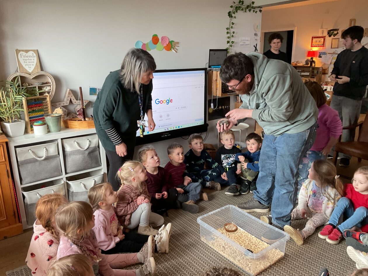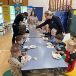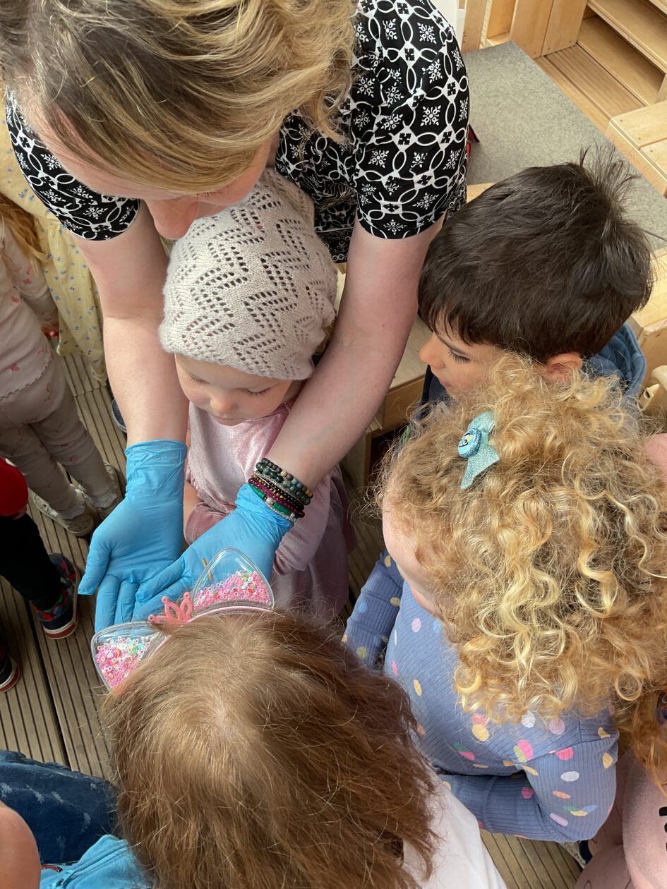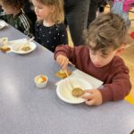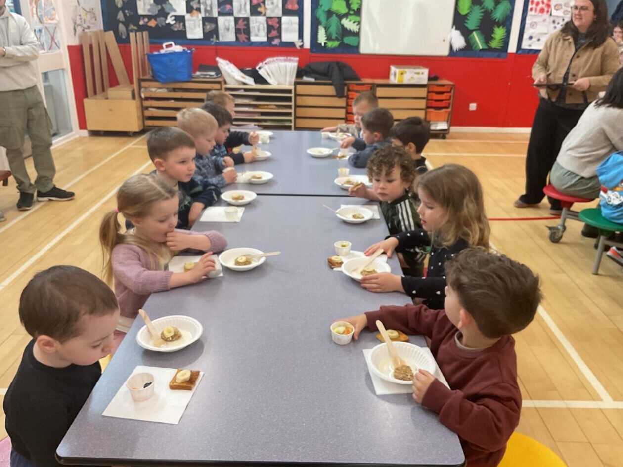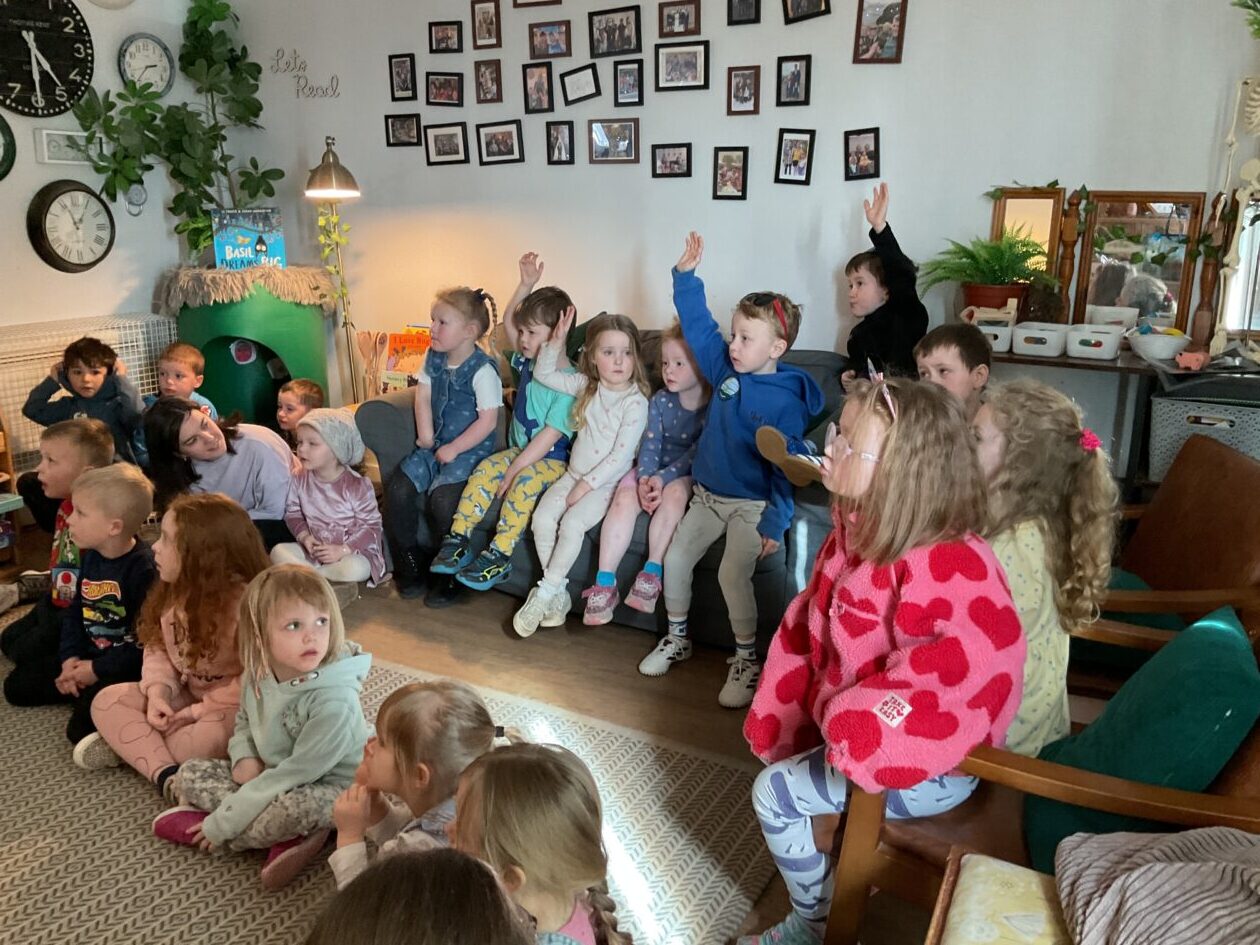 Rhyme Detection: Helping children recognise when two words sound the same at the end (e.g., “cat” and “hat”).                                Rhyme Completion: Pausing during a familiar nursery rhyme to let children “fill in the blank” (e.g., “Twinkle, twinkle, little star, how I wonder what you… are!”).                                                                                Rhyme Generation: The bairns have been creating  their own rhyming words, including “nonsense” words like “shmancake” for “pancake”