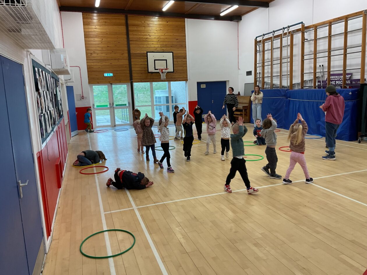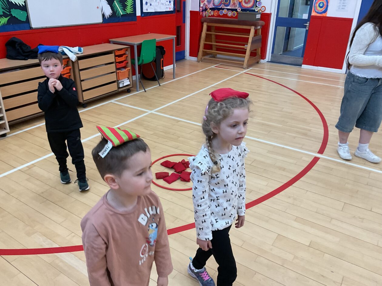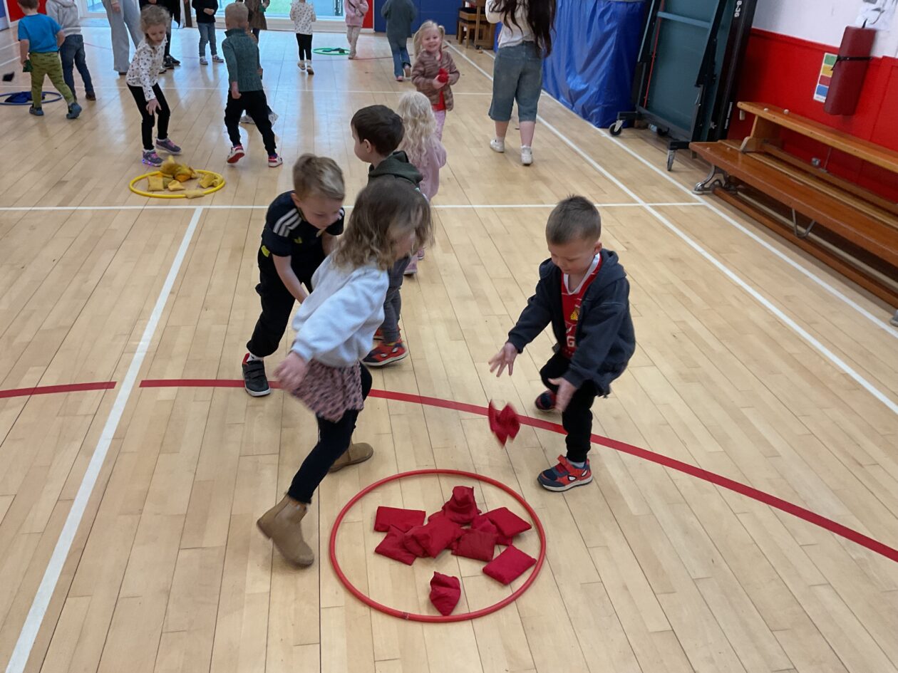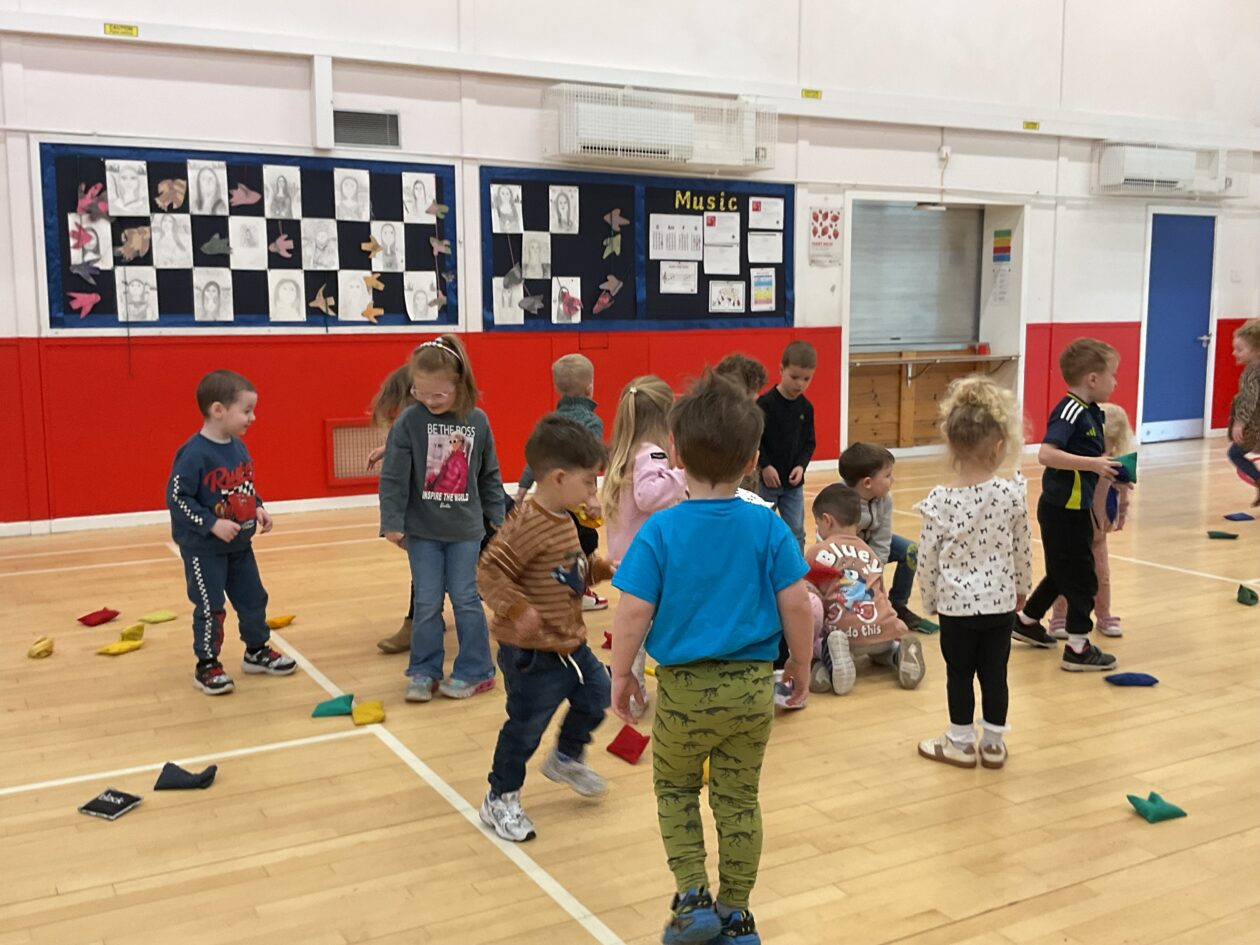Mrs Garrick is away just now so there was no music this week. We used our hall time for group games, to work on listening skills, coordination and team building. the games included, Duch Duck Goose, Cleaning and Messies, Beanbag balancing, Sorting games and Animal hoop homes.