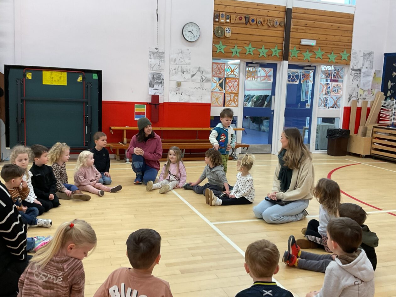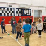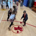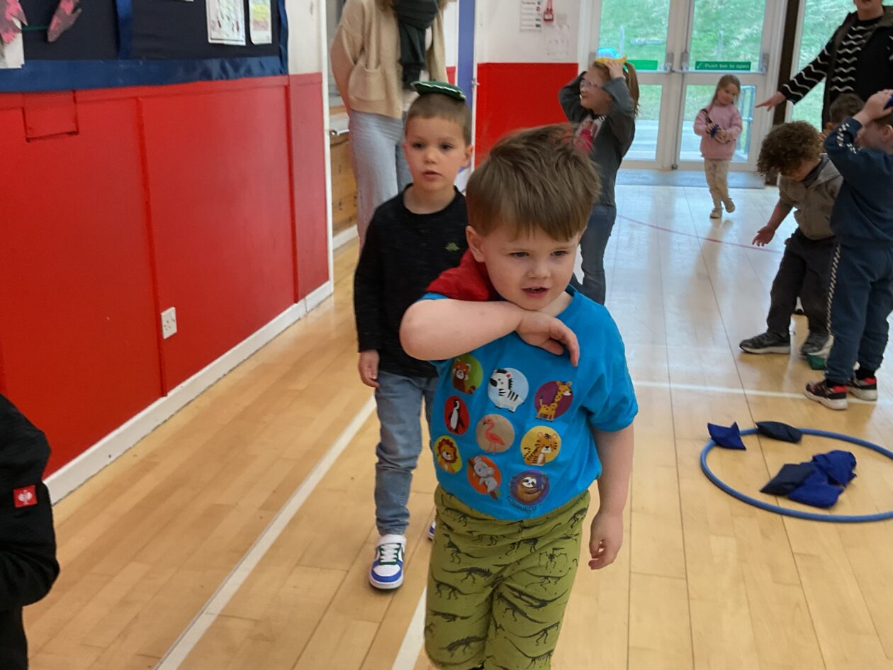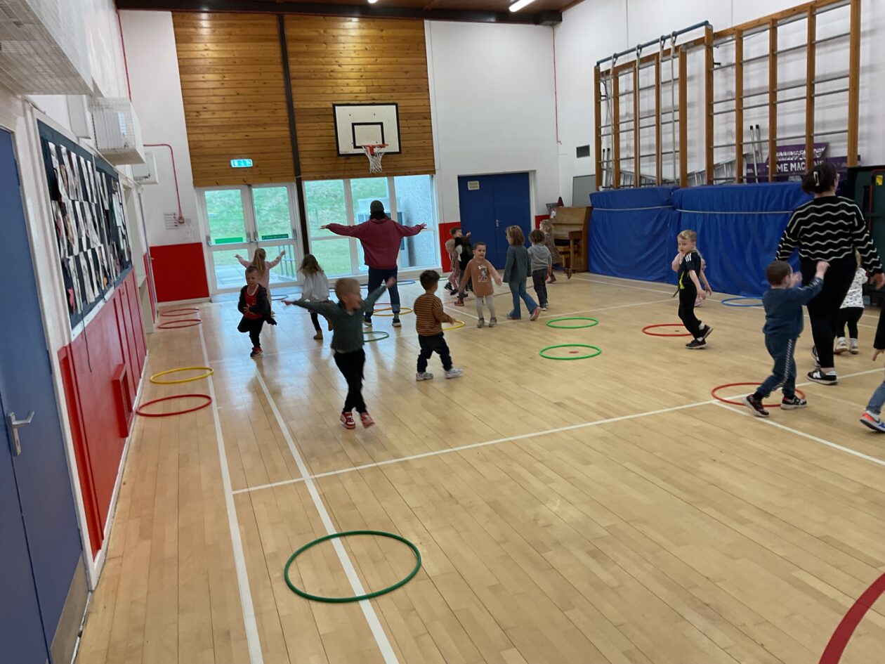 Mrs Garrick is away just now so there was no music this week. We used our hall time for group games, to work on listening skills, coordination and team building. the games included, Duch Duck Goose, Cleaning and Messies, Beanbag balancing, Sorting games and Animal hoop homes.