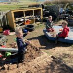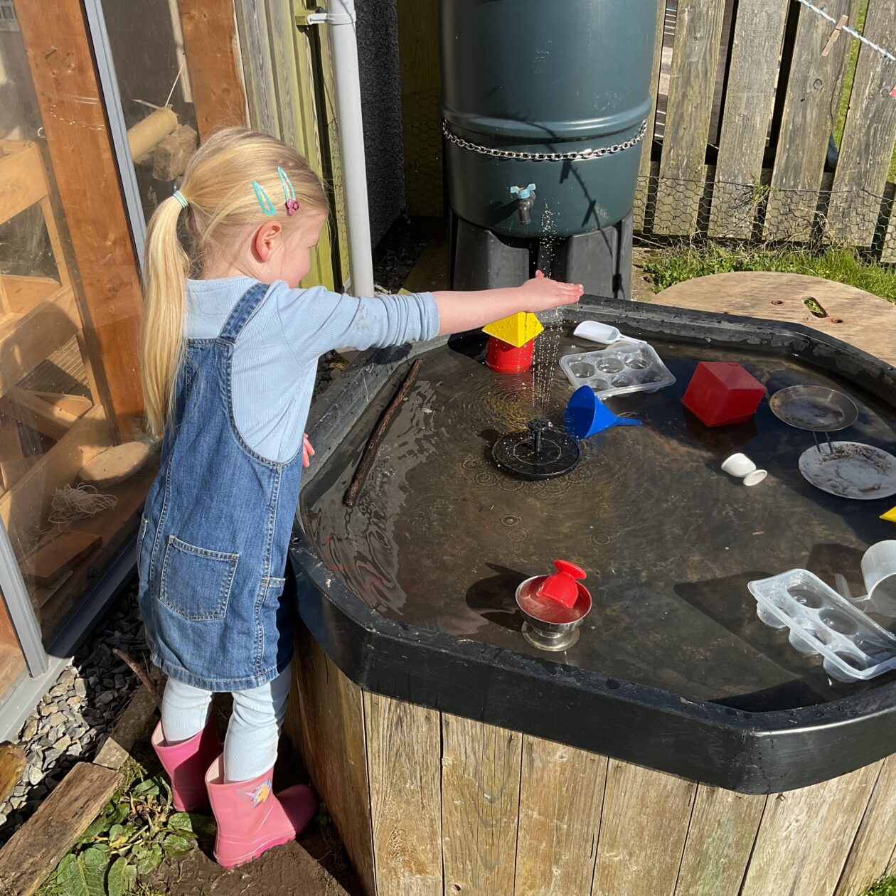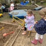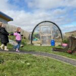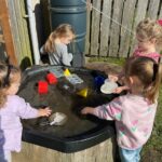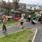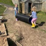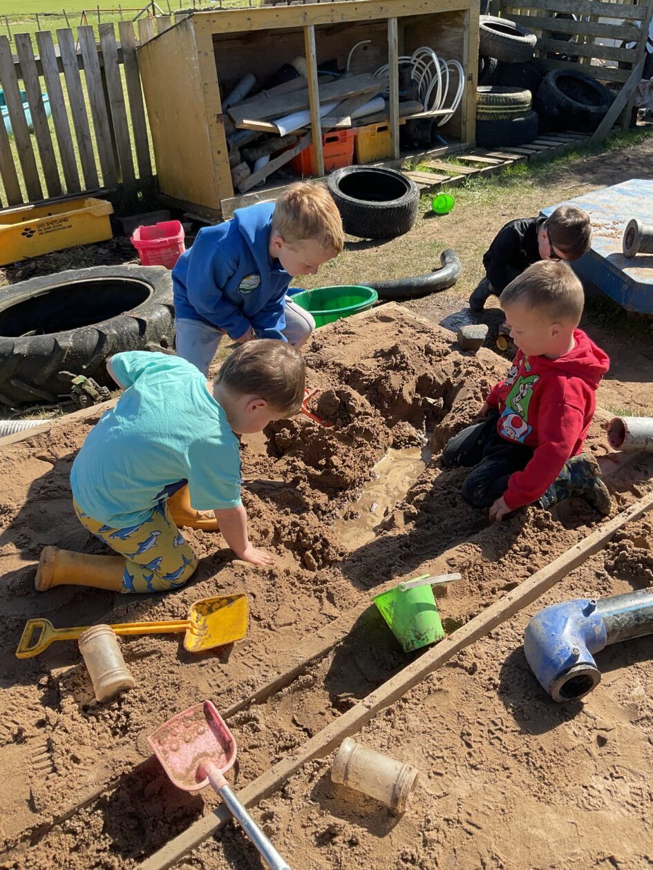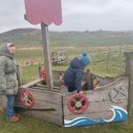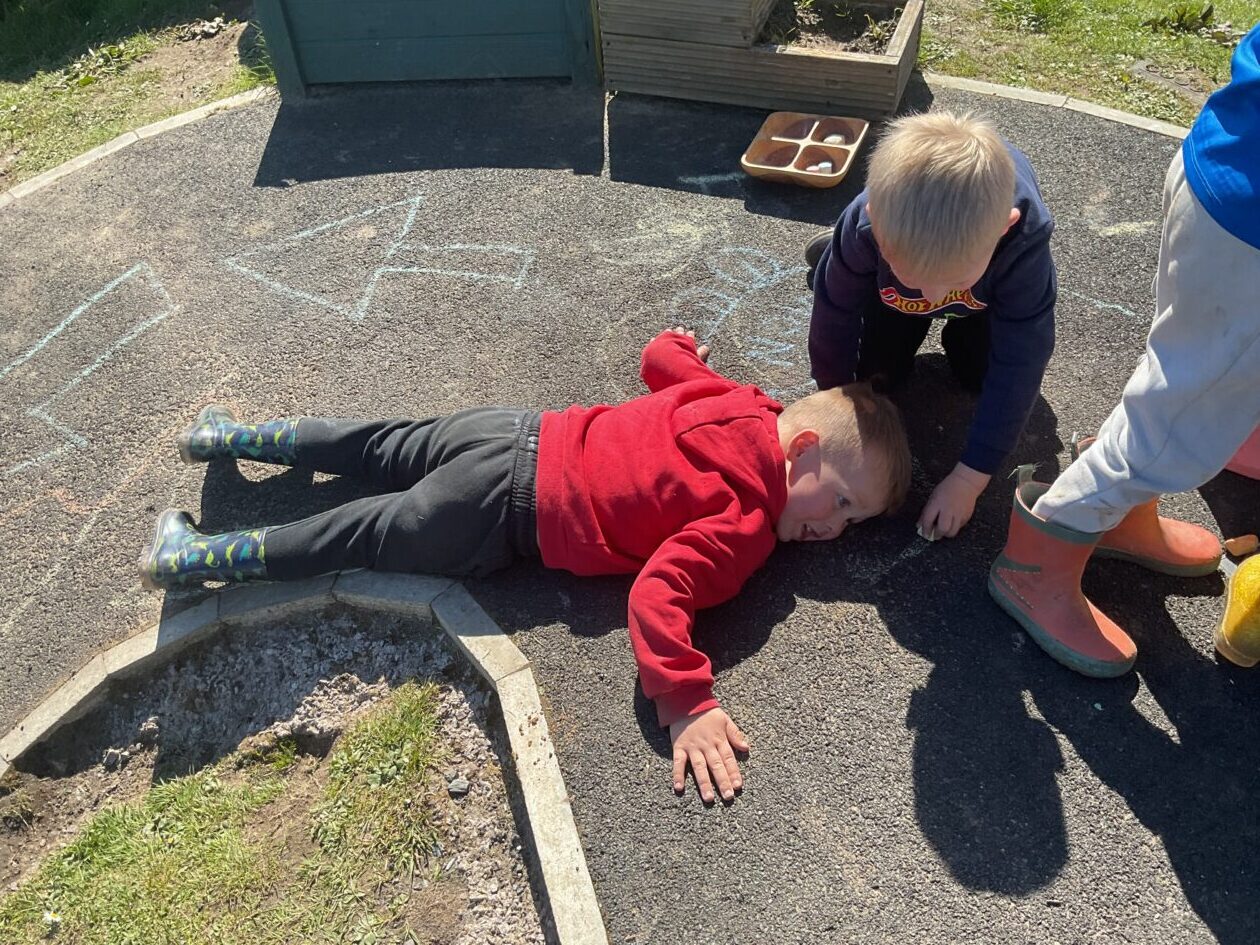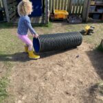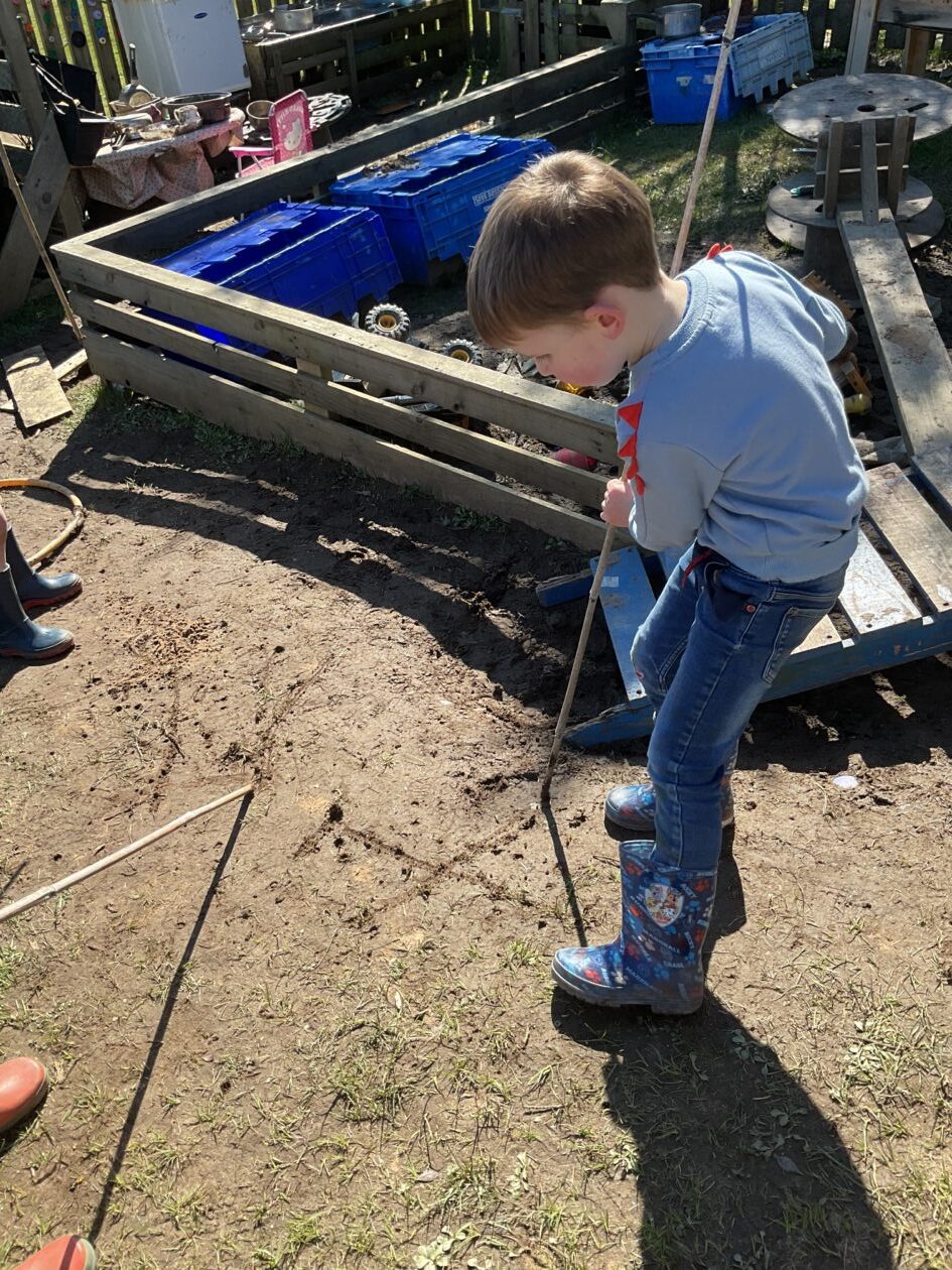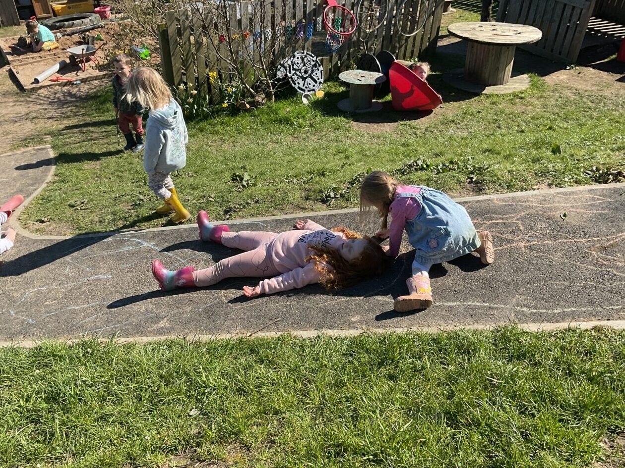 The bairns have been engaged for extended periods of outdoor play this week.  They have been creative with chalk and paint, travelled very fast down the slide, chased each other during role play, had a tea party, practiced using hula hoops and dug in the topped-up sand pit.  They share ideas and the play evolves over time.  There has been a lot of fishing boat construction using the large hollow blocks in the outdoor room.  This week, the bairns used the outdoor climbing wall as the side of a boat, saving people who had fallen into the ocean.