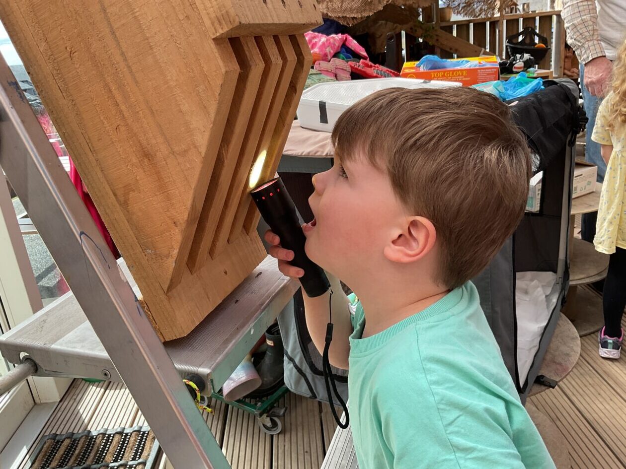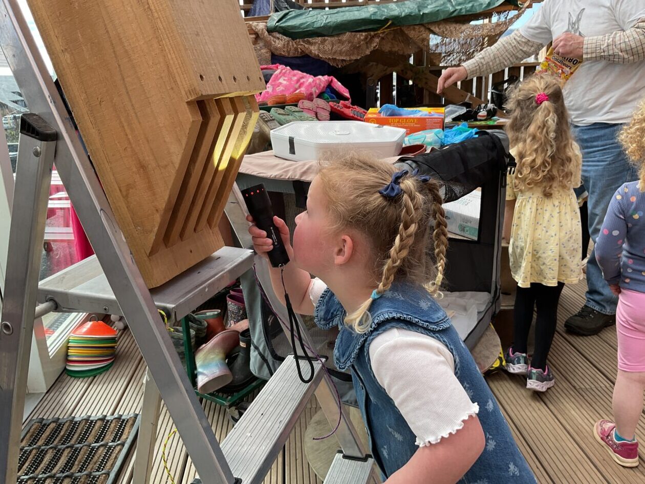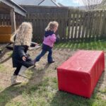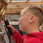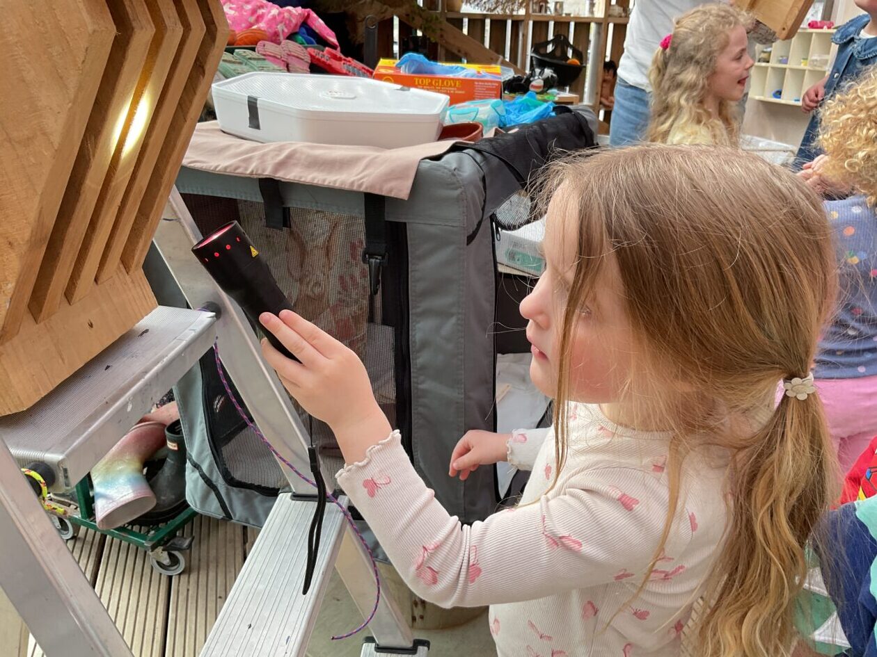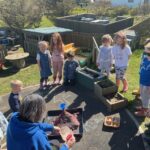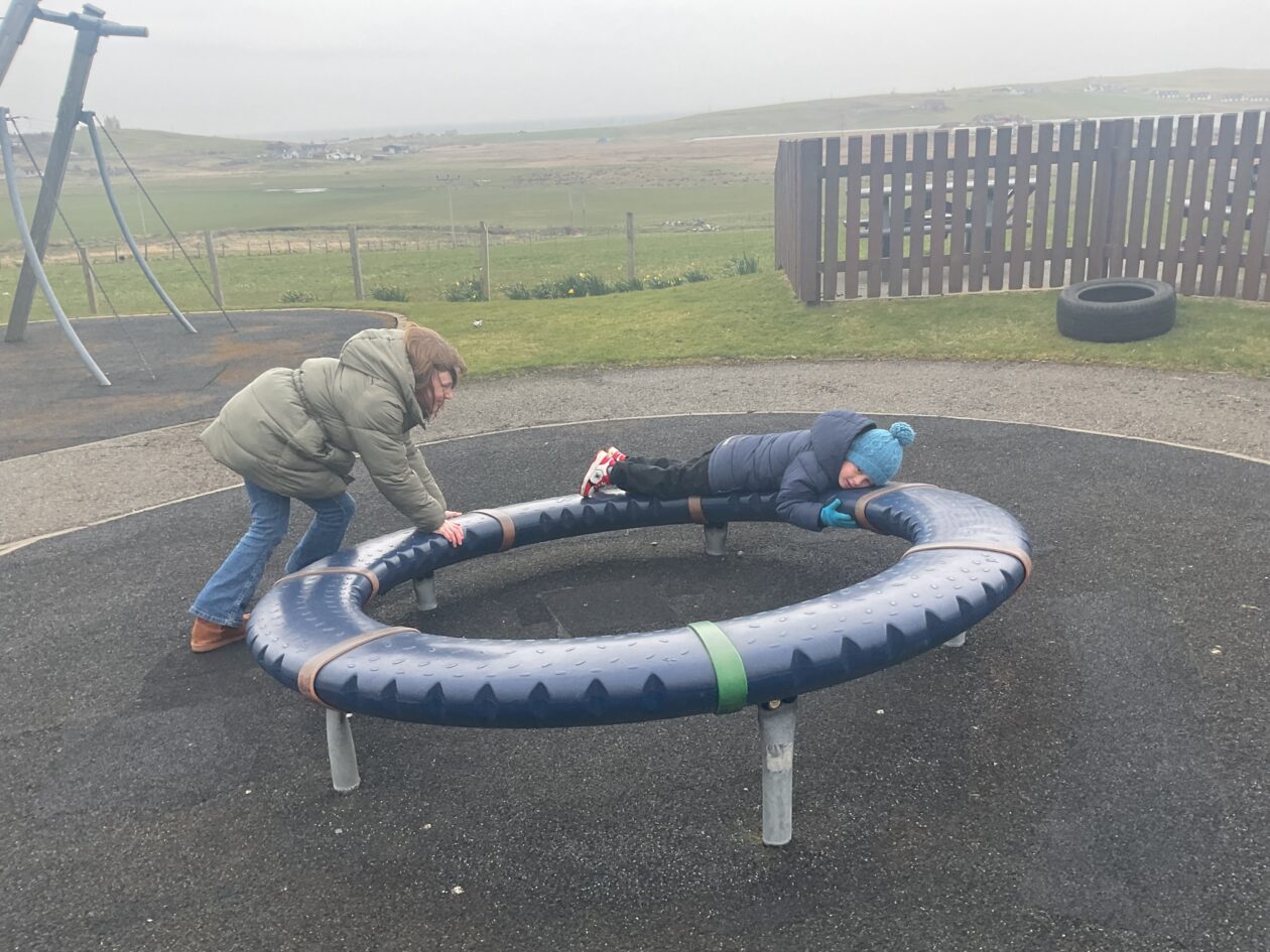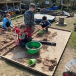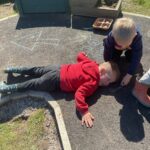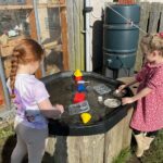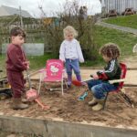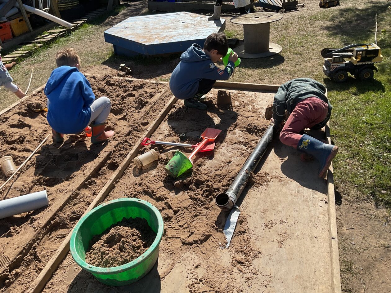 The bairns have been engaged for extended periods of outdoor play this week.  They have been creative with chalk and paint, travelled very fast down the slide, chased each other during role play, had a tea party, practiced using hula hoops and dug in the topped-up sand pit.  They share ideas and the play evolves over time.  There has been a lot of fishing boat construction using the large hollow blocks in the outdoor room.  This week, the bairns used the outdoor climbing wall as the side of a boat, saving people who had fallen into the ocean.