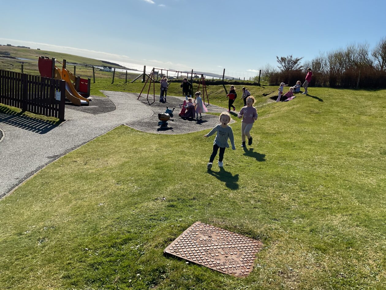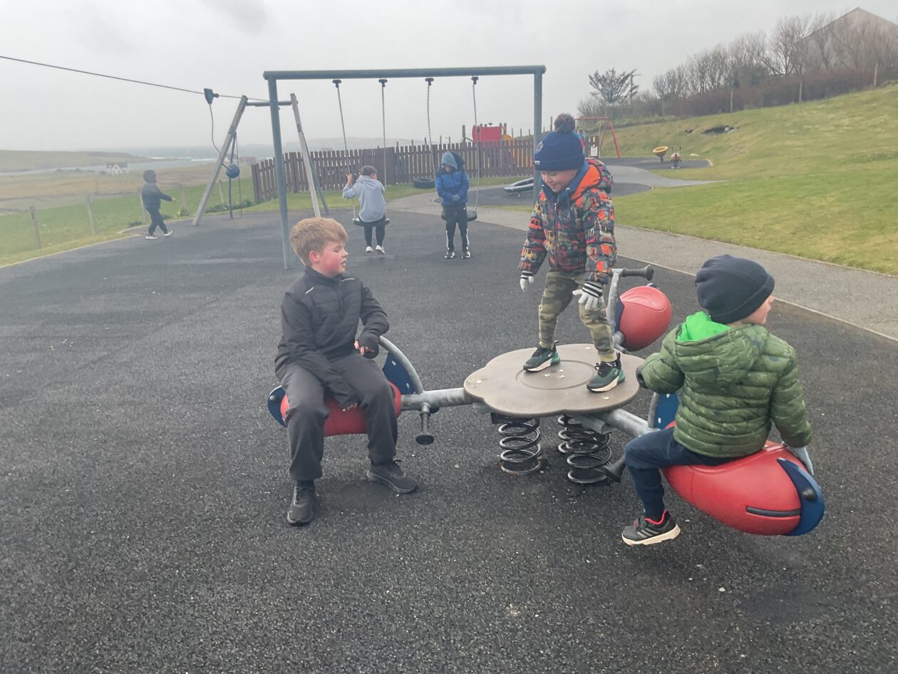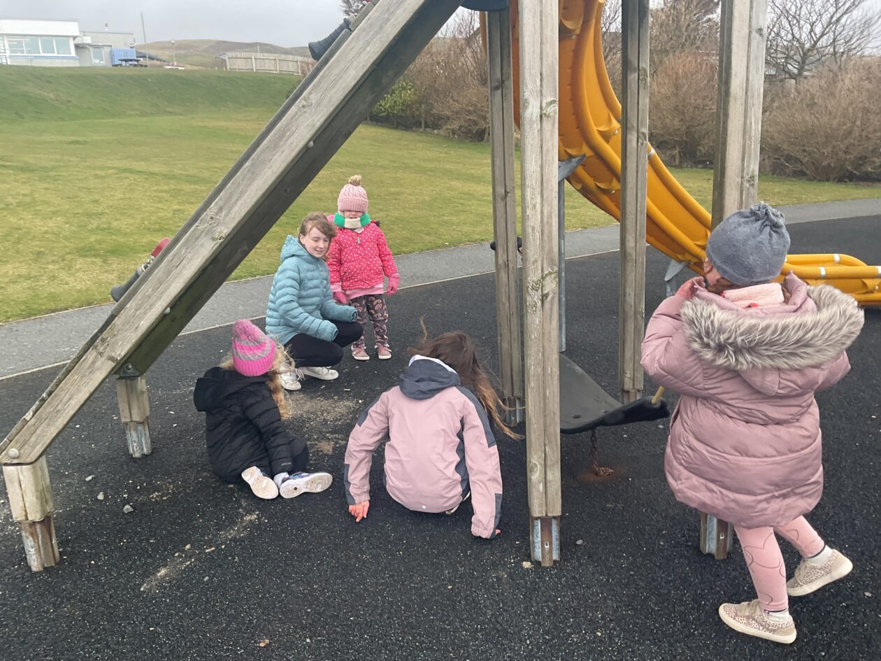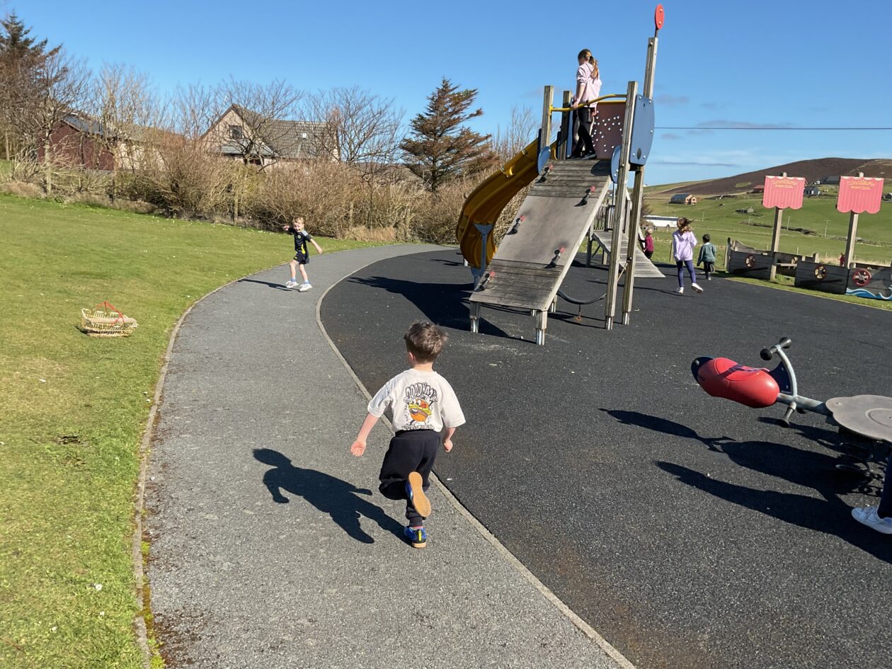 The bairns met up with their P6 buddies in nursery and headed out to the playpark.  There was plenty of chasing, exploring and group play.  “It was so much fun!”