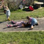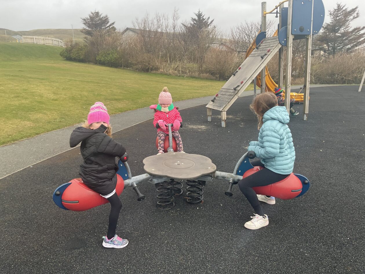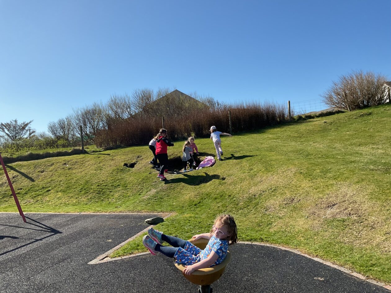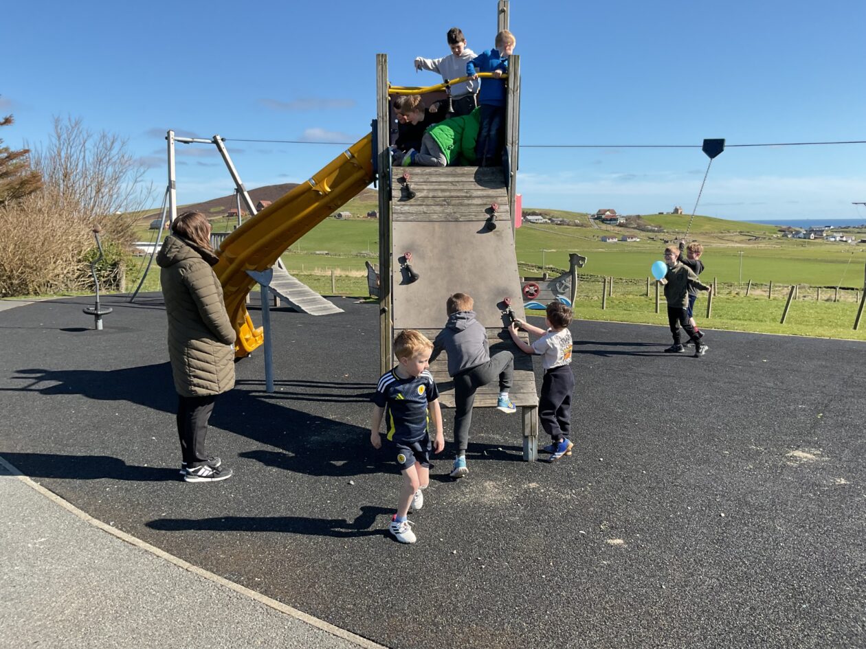 The bairns met up with their P6 buddies in nursery and headed out to the playpark.  There was plenty of chasing, exploring and group play.  “It was so much fun!”