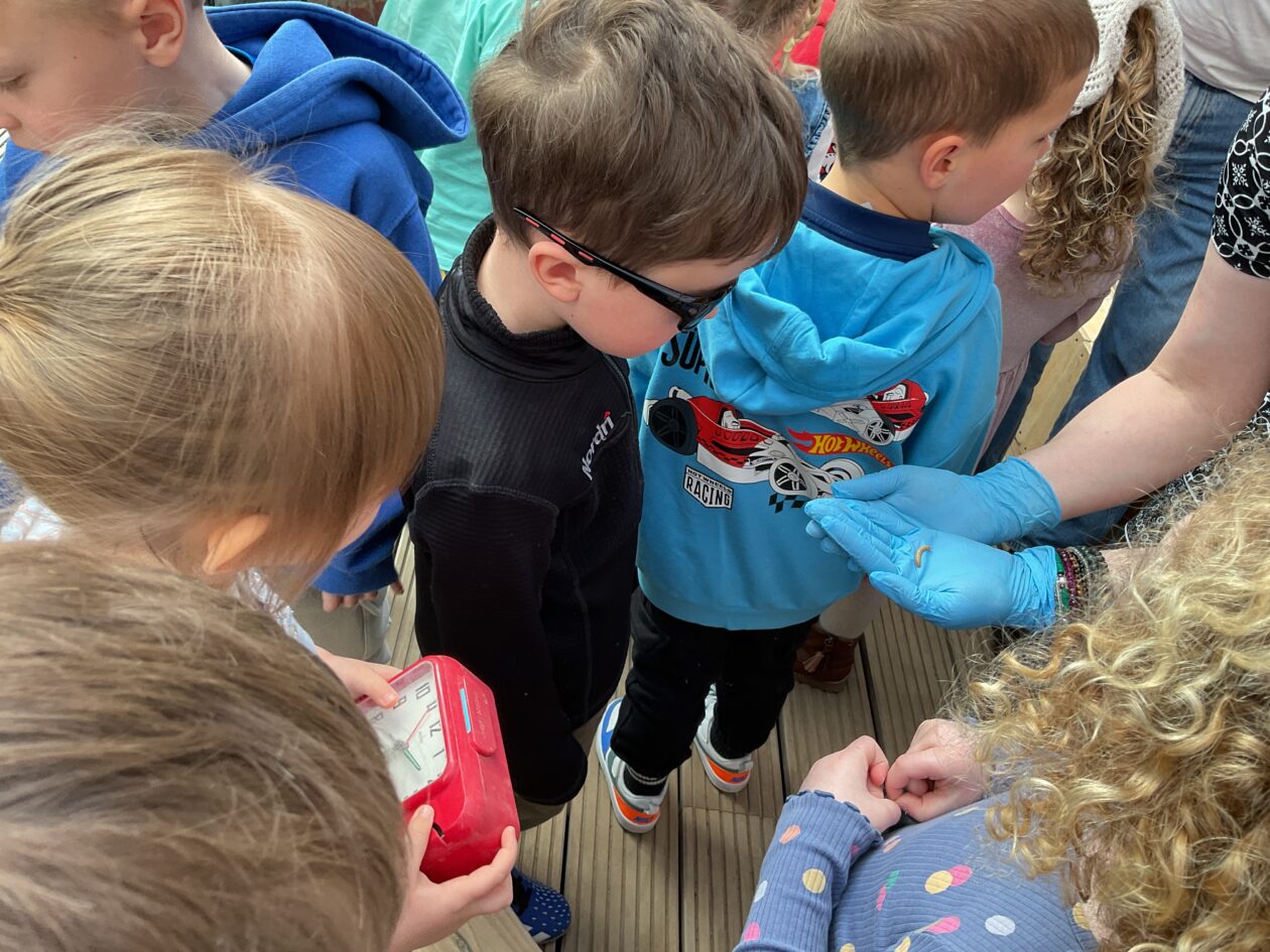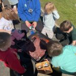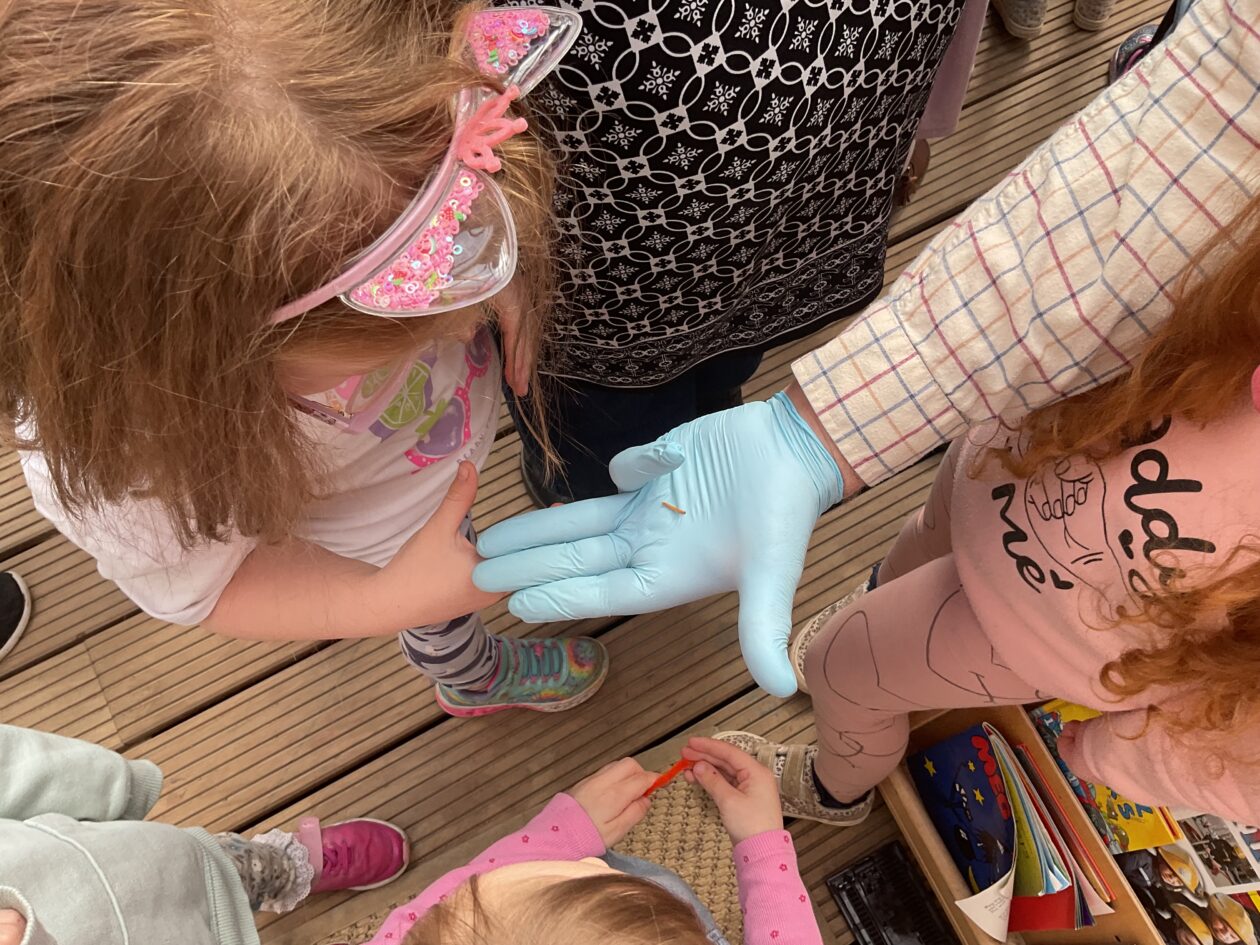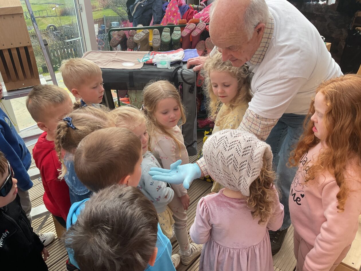There are bats in Mid Yell, Nesting, Kergord and Quarff.  Mr Gulliver explained how he cares for poorly bats and how they are tracked with a numbered ring on their arm.  The bairns had a look at some of the equipment used to care for the bats.  Mr Gulliver measured their fingers with calipers and described how these are used to measure the length of a bat’s arm.  Mrs Smith showed them a large mealworm – a bat’s favourite snack!