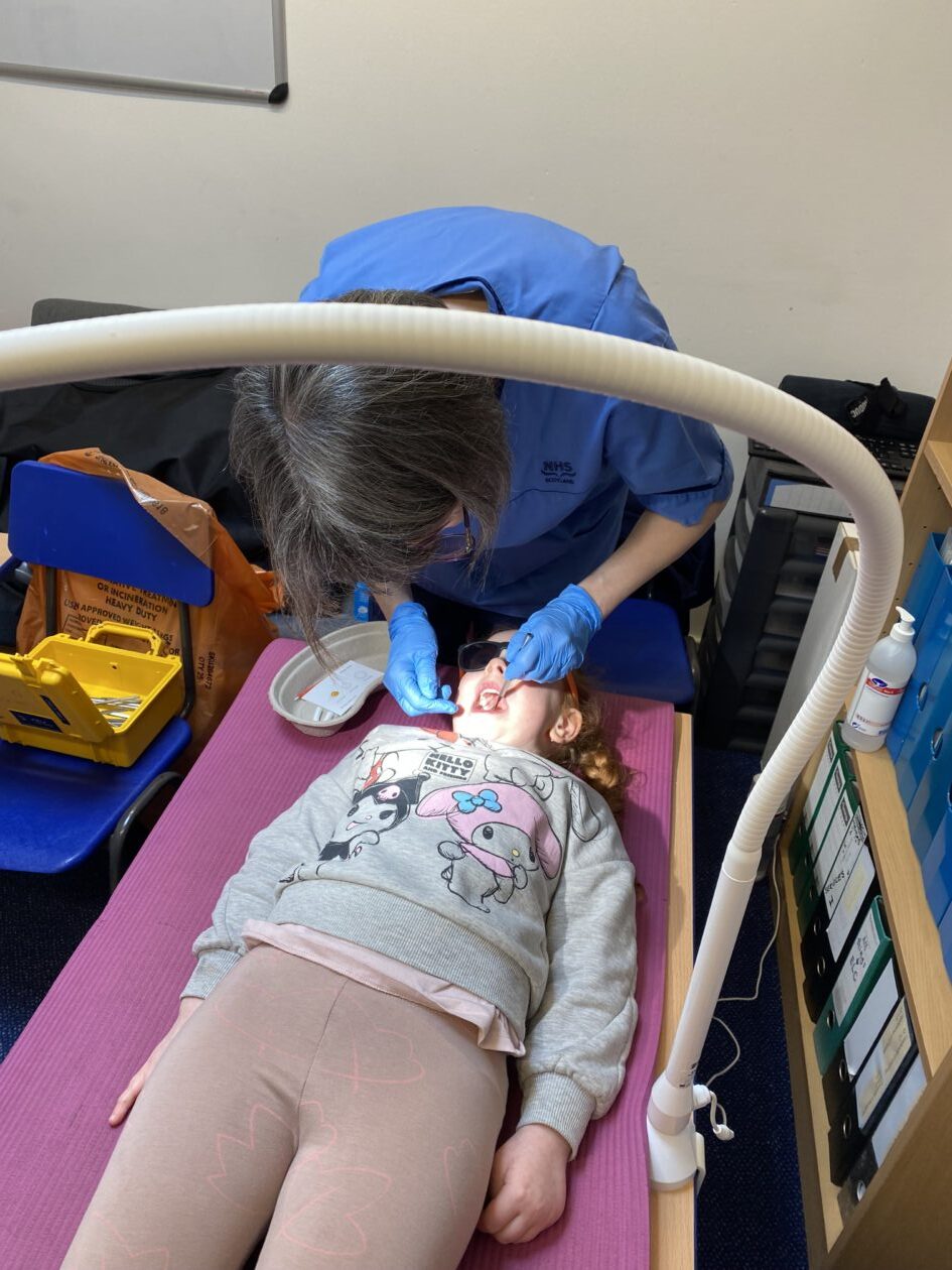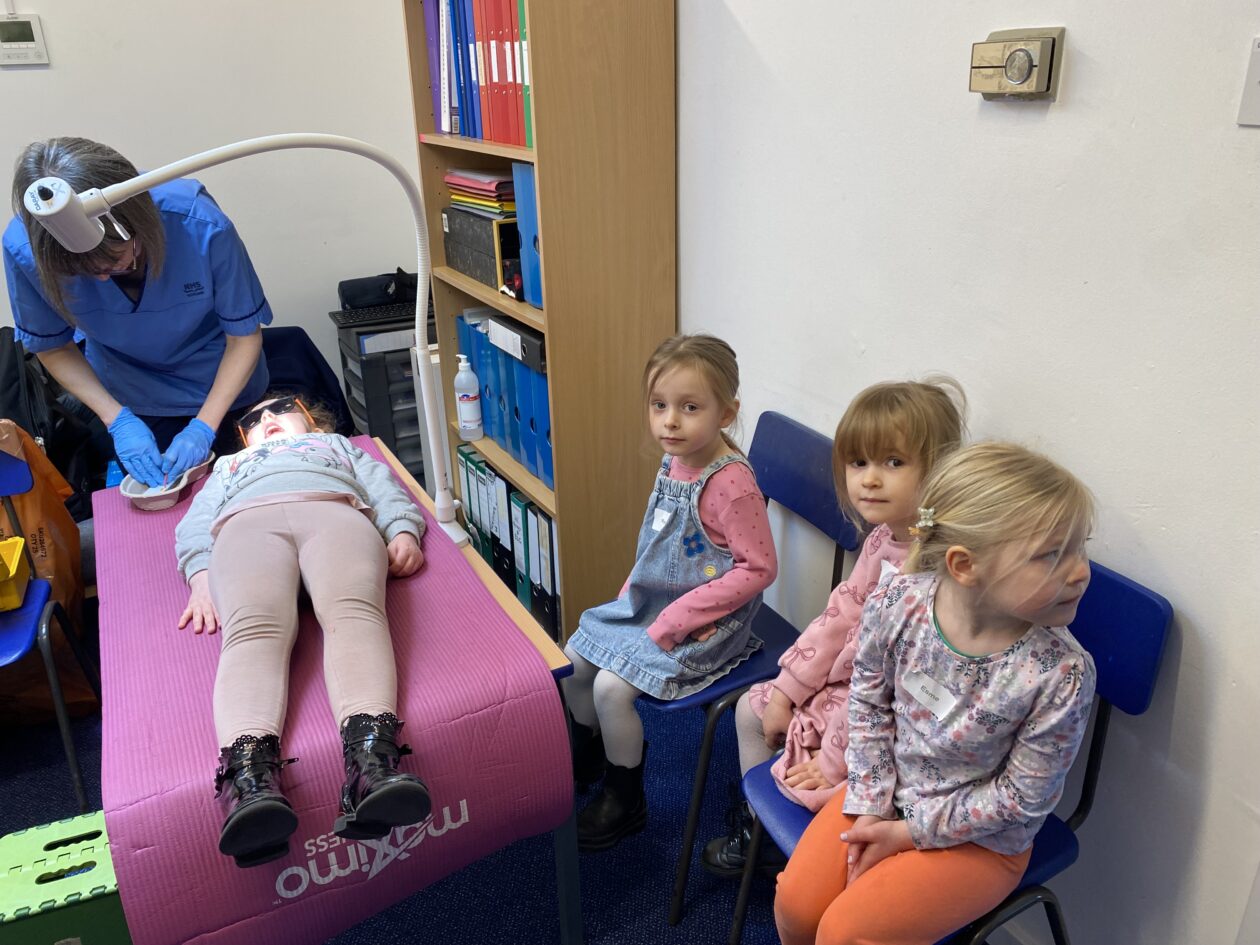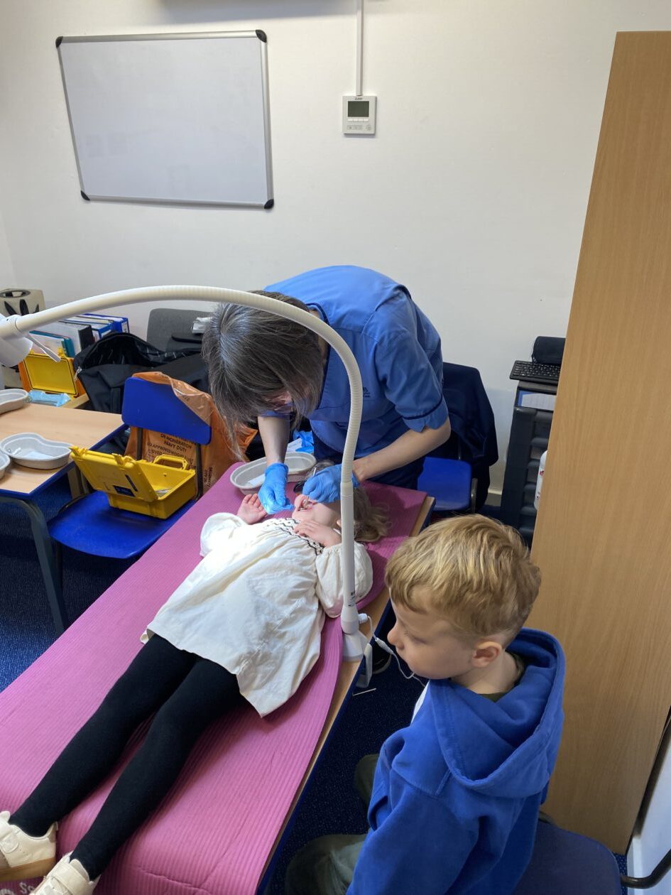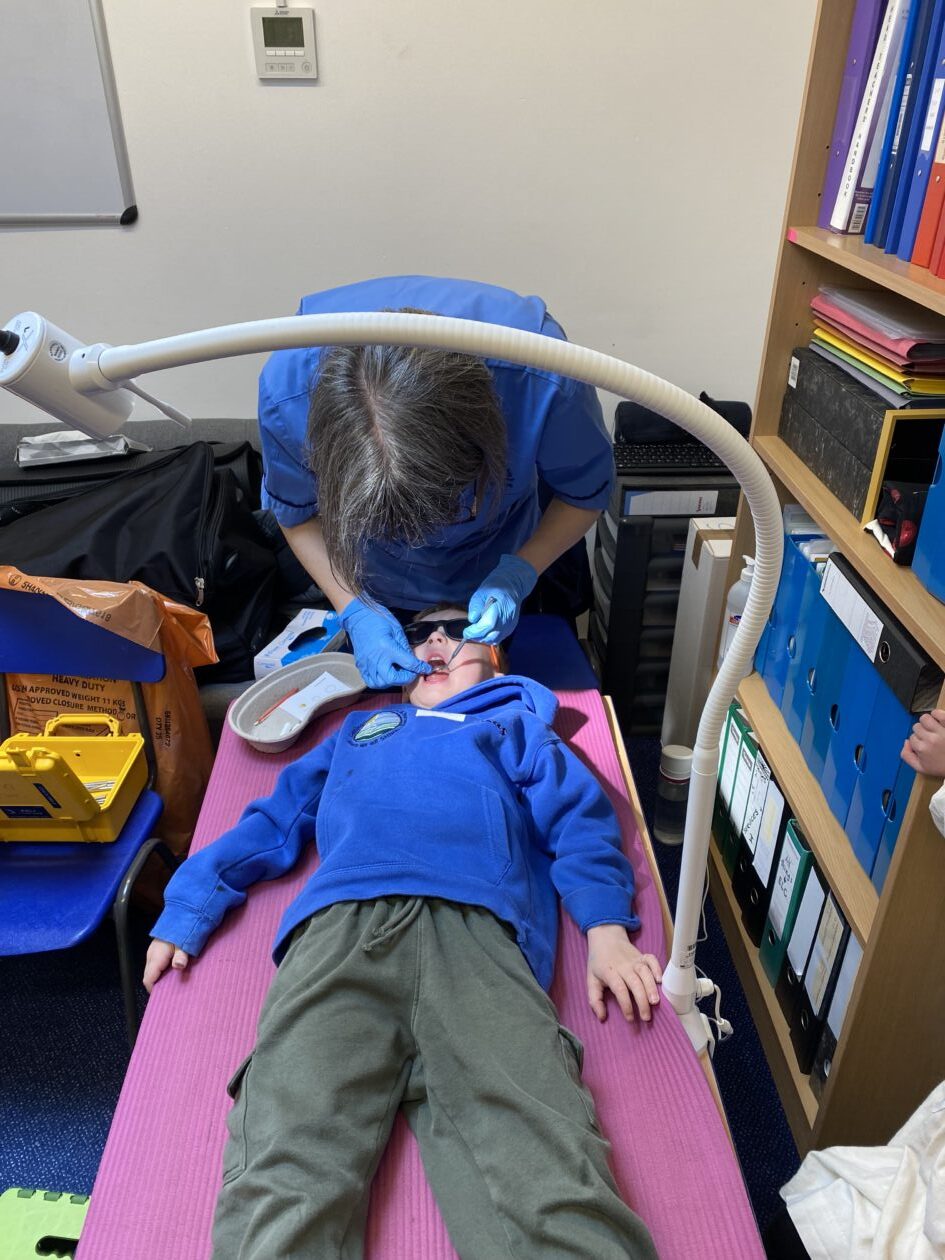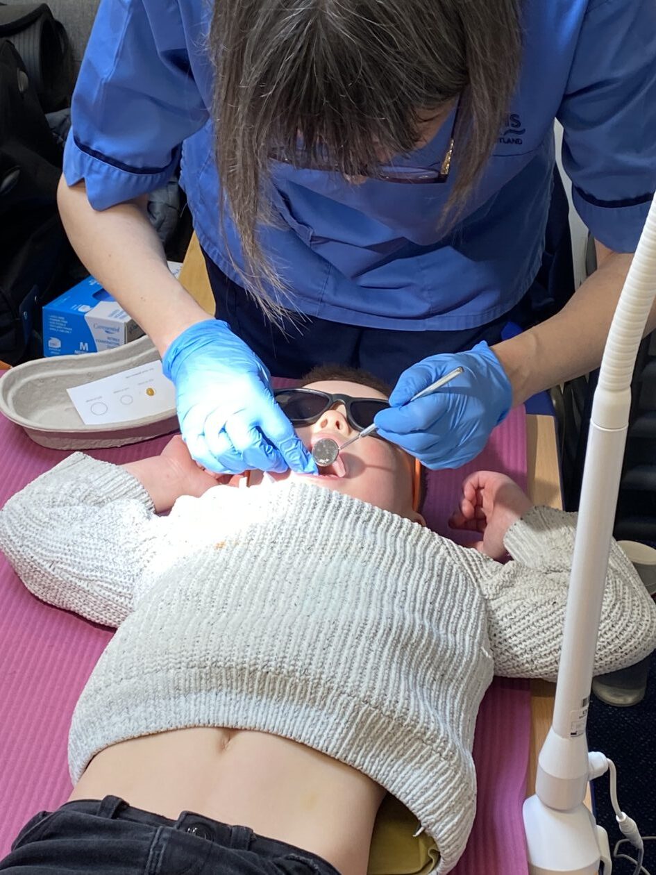 Childsmile applied fluoride varnish to the bairns’ teeth which helps to provide protection against decay and reduces sensitivity.  There was lots of discussion about tastebuds.  The bairns noticed that their mouths were producing more saliva and wondered why.  We spoke about the flavour of the fluoride varnish and how the brain thinks that it’s food so it produces more saliva to help break down the food for digestion.  “It’s yellow.”