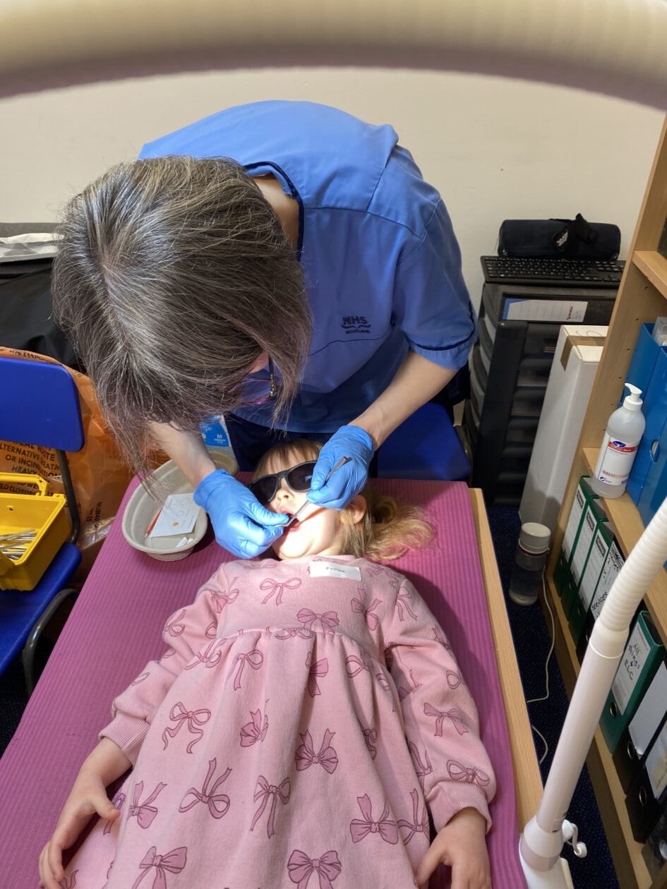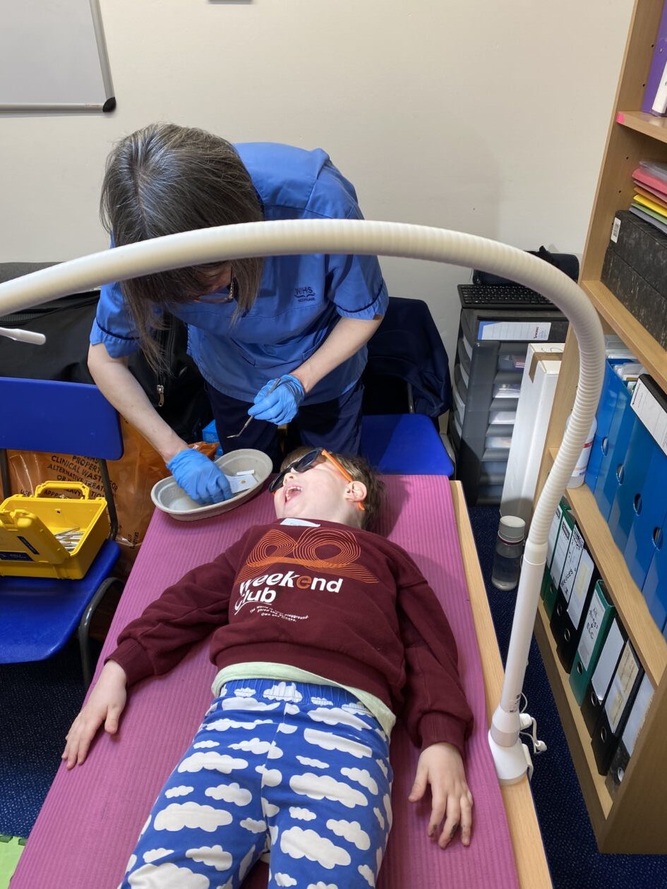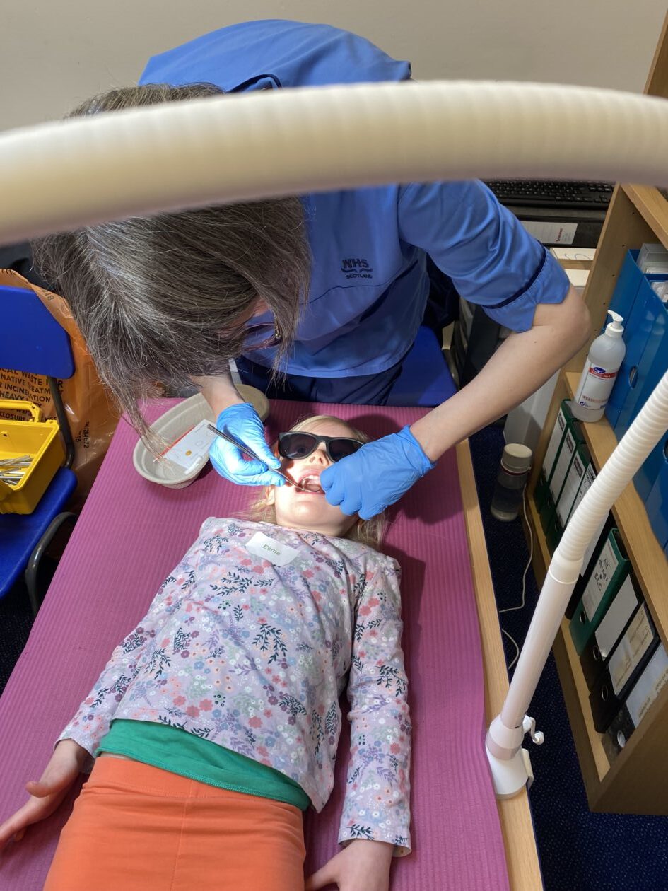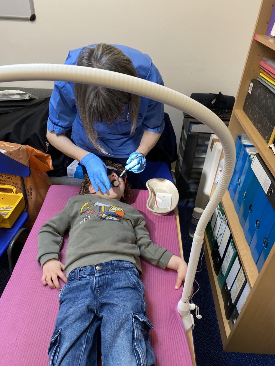 Childsmile applied fluoride varnish to the bairns’ teeth which helps to provide protection against decay and reduces sensitivity.  There was lots of discussion about tastebuds.  The bairns noticed that their mouths were producing more saliva and wondered why.  We spoke about the flavour of the fluoride varnish and how the brain thinks that it’s food so it produces more saliva to help break down the food for digestion.  “It’s yellow.”