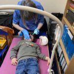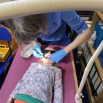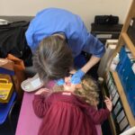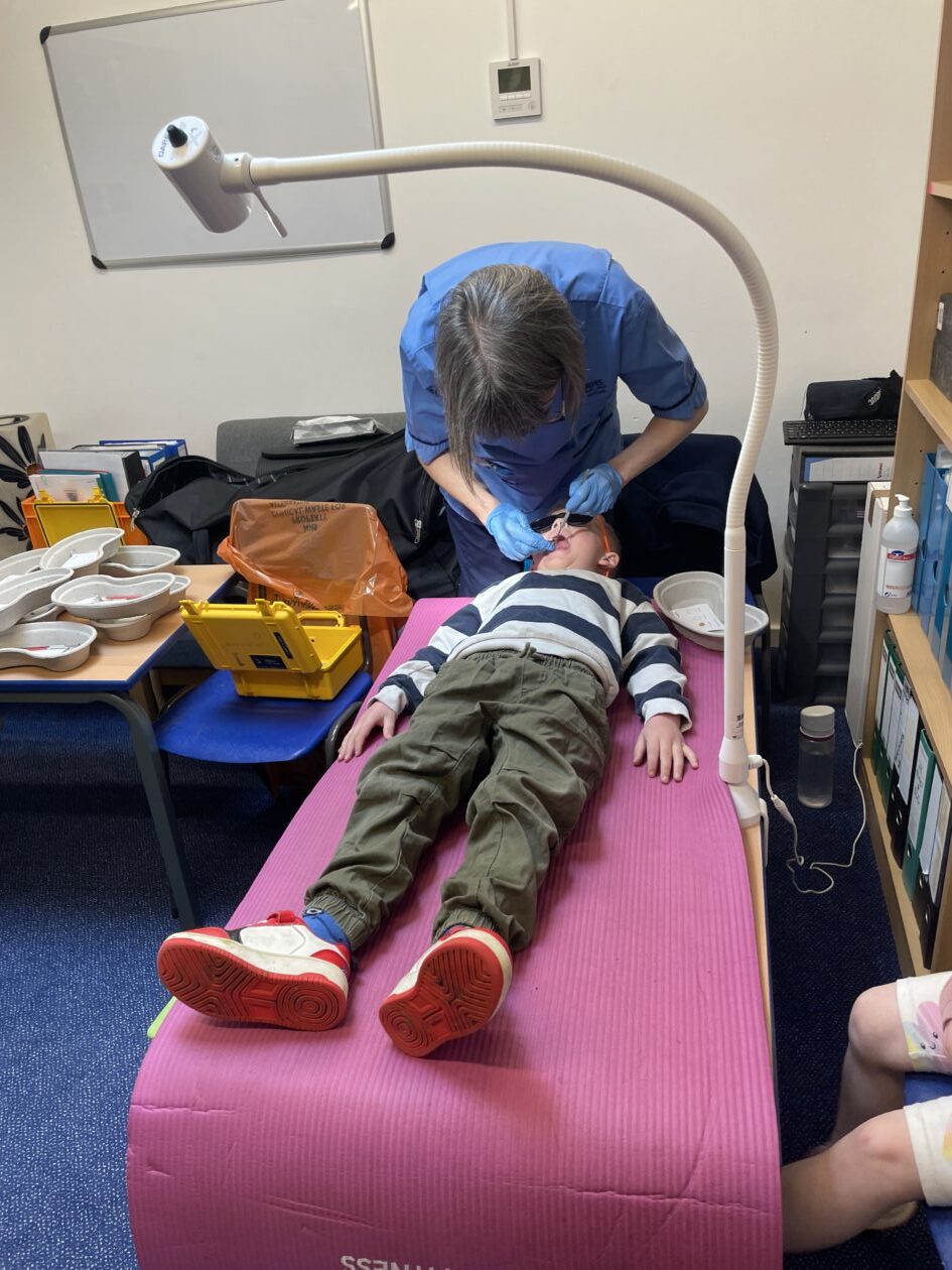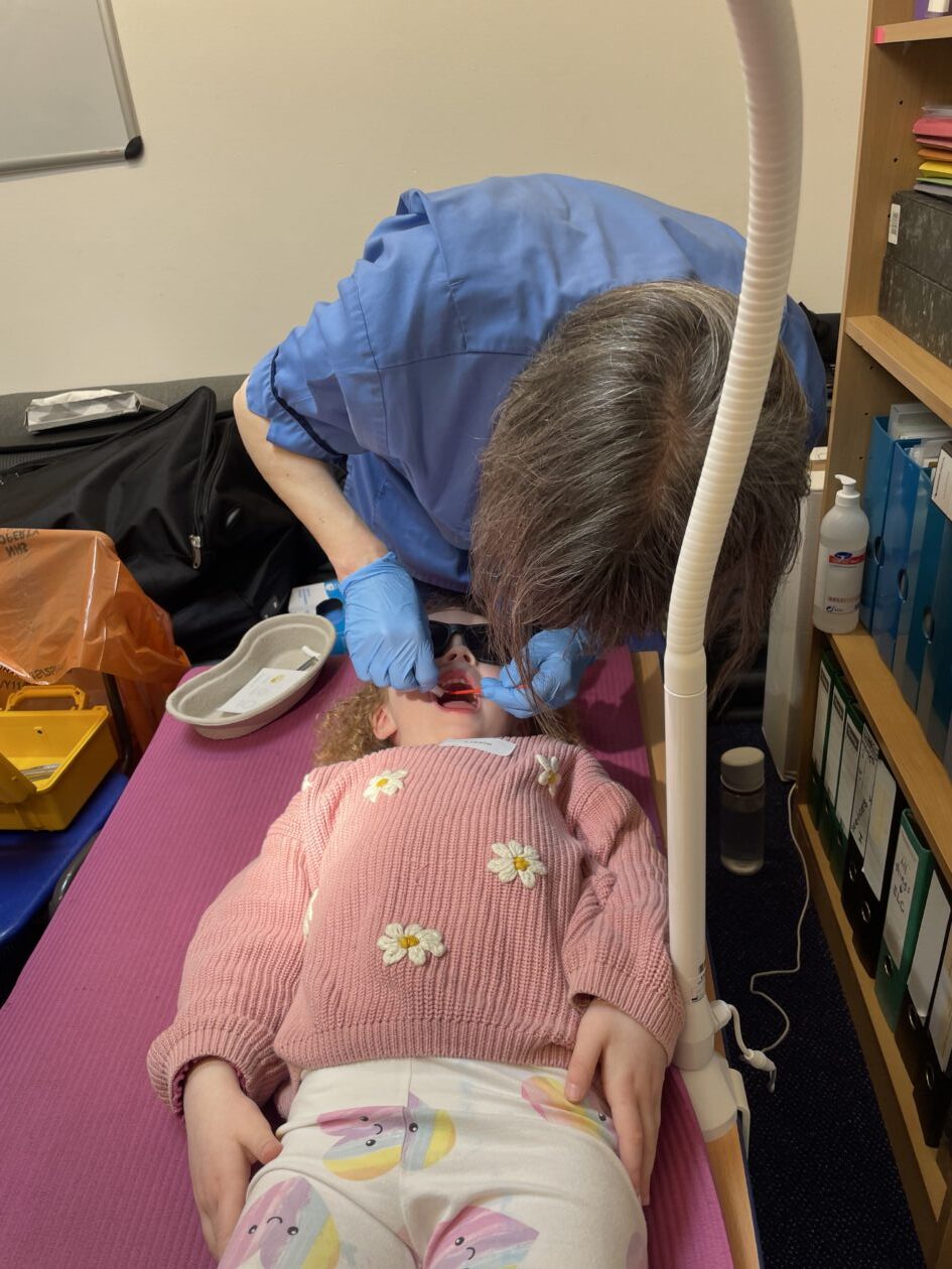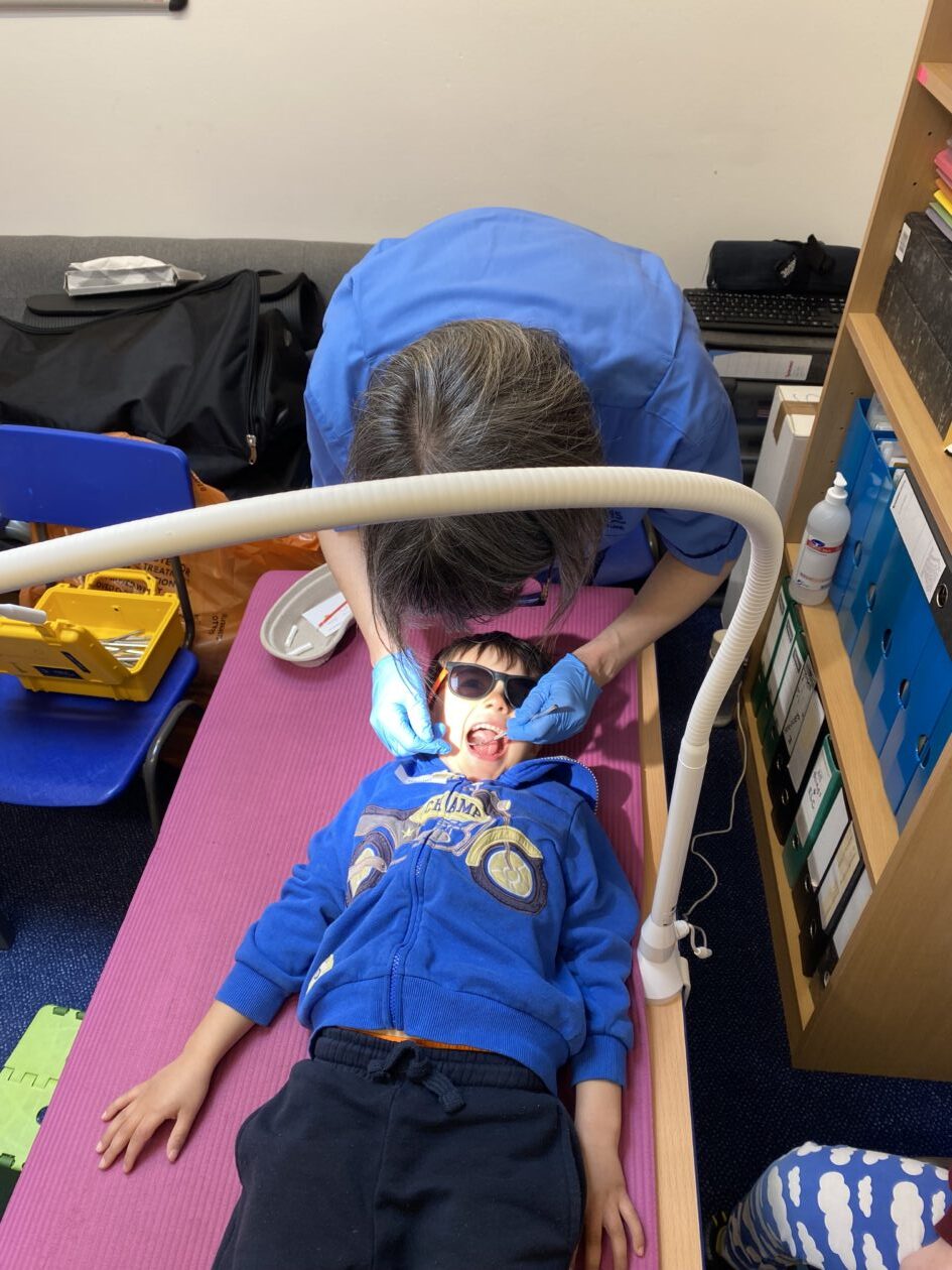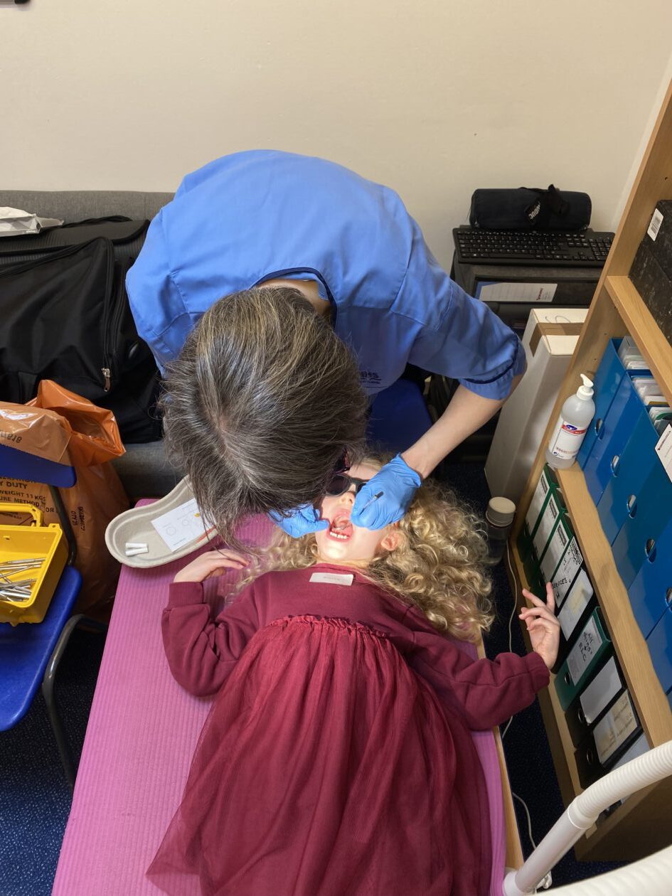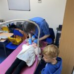 Childsmile applied fluoride varnish to the bairns’ teeth which helps to provide protection against decay and reduces sensitivity.  There was lots of discussion about tastebuds.  The bairns noticed that their mouths were producing more saliva and wondered why.  We spoke about the flavour of the fluoride varnish and how the brain thinks that it’s food so it produces more saliva to help break down the food for digestion.  “It’s yellow.”