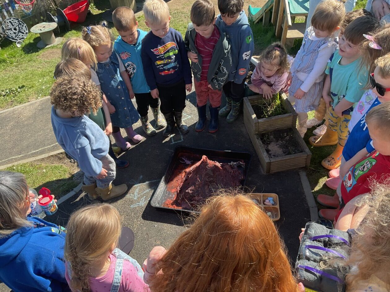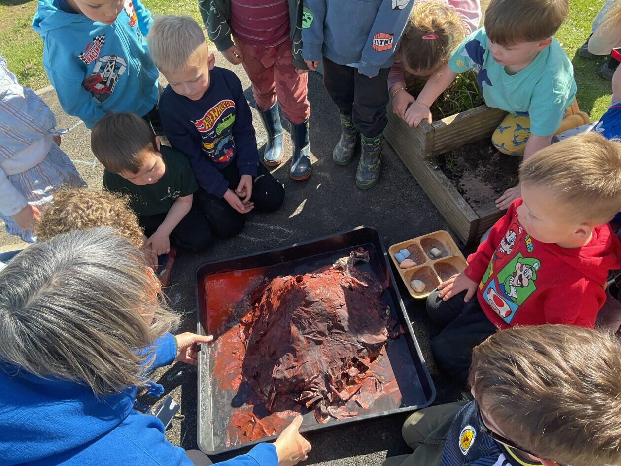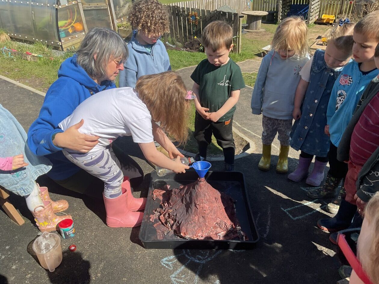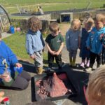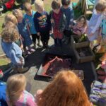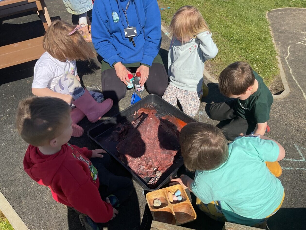 The bairns continued their STEM experiment and erupted their volcano using a chemical reaction between vinegar and bicarbonate of soda.  There was rich discussion about the types of molten rock – magma inside the volcano and lava after an eruption.  The bairns spoke about the eruption of Mount Etna in Italy last year and how volcanoes can be active, dormant or extinct.  They also learned that many people who live near Mount Etna had to be moved to a safe place.  Our volcano was on a slant and the bairns correctly identified that the lava would flow down the mountain which wasn’t safe.