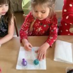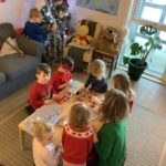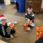 We held our Christmas party this week and it started with fun and games in the big hall. The bairns enjoyed lots of games – pass the elf boot, Christmas corners, snowball race and musical statutes. Then it was time for a party snack which had been chosen by the bairns. After snack we headed to the quiet room to pass out Christmas gifts which focused on a handmade theme.