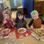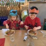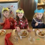 Not even a snow storm could stop our Christmas denner! The cooks in the canteen made a delicious traditional Christmas lunch with turkey and all the trimmings, followed by sticky toffee pudding. The bairns enjoyed pulling their crackers and deciding how to wear their party hats!