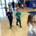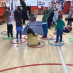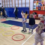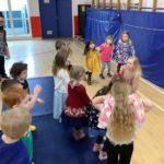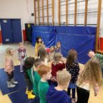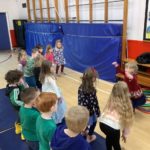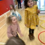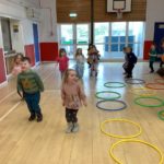There was a theme for this week’s music lesson – Easter chicks! The bairns used hula hoops to pretend they were chicks inside an egg, moving their limbs in time with the music to hatch out of their shell. Next, they moved around the hall in time with the music while doing the actions for various Spring animals. There were some epic moves during the Everybody Do This song! We had another opportunity to practice using the beaters, alternating between right and left hands and then beating with both hands together.
