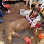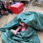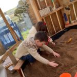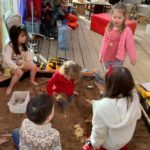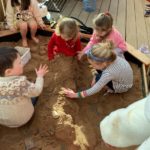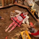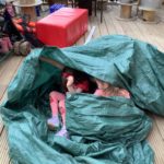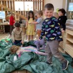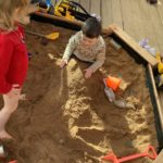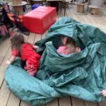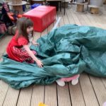 During play in the sand pit, some of the bairns decided to take off their shoes and socks to feel the sand between their toes. This led to a beach day. Everybody was doing something different – having a picnic, digging, building sandcastles, sunbathing, paddling, looking for beach treasure, burying feet and taking turns to become a mermaid.