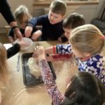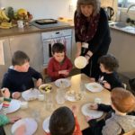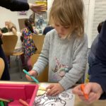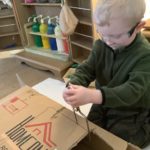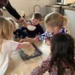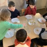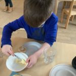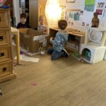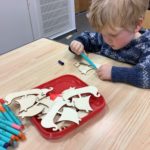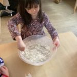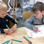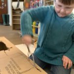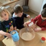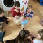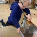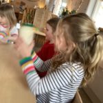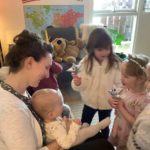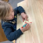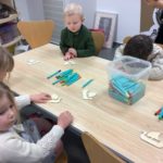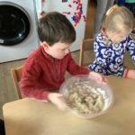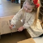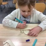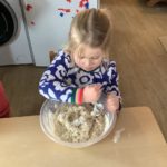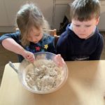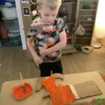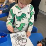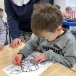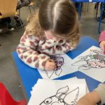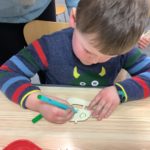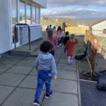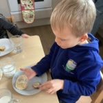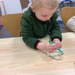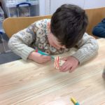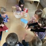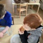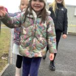 The bairns asked if we could visit the houses next to nursery soon. They made Easter cards to deliver to each resident. At each house with someone home, the bairns gave a loud ‘Happy Easter’. It was break time when we came back to school so we headed into the staff room to give cards to Mrs Dade, Mrs Johnson and Miss Hunter.