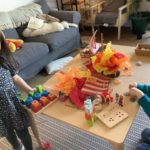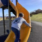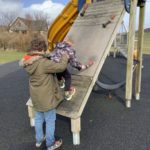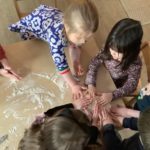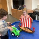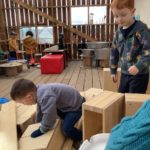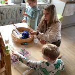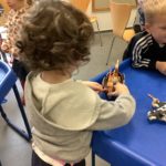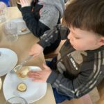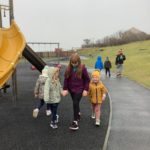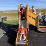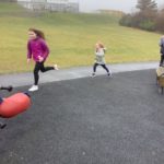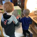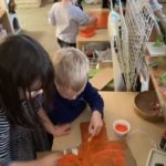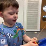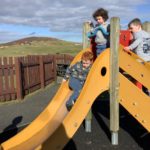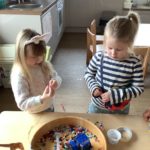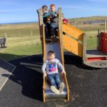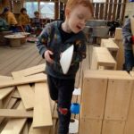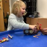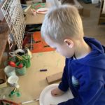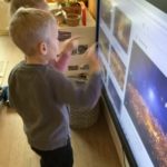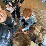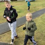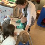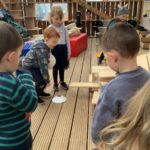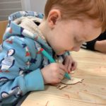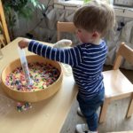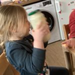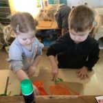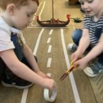The bairns asked for some Easter books so we gathered a few from the library to add to our bookcase. One of the bairns took in a goose egg. We talked about where it came from and how it might taste, comparing it to our hen’s egg. We prepared hard boiled eggs ready for decorating and rolling. The bairns used paint pens to add their drawings and writing to the egg shells. We headed out to the playpark and found a good hill for rolling. Ready, Set, Go!