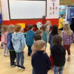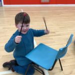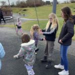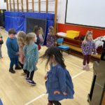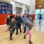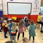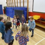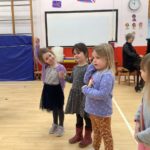On a hunt for Easter eggs, the bairns found a set of elastics “what are dese?”. After a demonstration from Mrs Meadows, Mrs Smith and Miss Brannan, the bairns took turns to try their jumps. They added rhymes using Alexa to jump in time with the words.