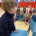 We were invited, with the school, to the local kirk for an Easter service. The bairns were asked lots of questions about what Easter means to them and what it means to Christians. Then it was time to see who could balance an Easter egg on their head for the longest. It’s almost as tricky as it sounds! We listened to a song on the big screen called God’s Not Dead. Afterwards one of the bairns asked if the kirk had a magic wall! We ended with a short prayer.