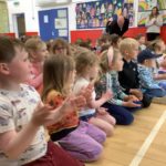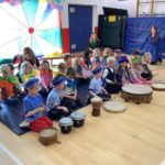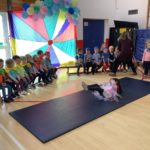 We celebrated our pre-schoolers this week with a circus themed graduation – The Greatest Graduation Show.  The bairns marched around the hall before taking their seats at the front.  The crowd were treated to performances from tightrope walkers, dancers, clowns and acrobats.  The bairns also took to the drums and sang Right Hand Here, Left Hand There.  Then it was time to sing our goodbye song.  The pre-schoolers were presented with leaving certificates, a leavers’ medal and graduation cap.  It was lovely to share a little about each of the pre-schoolers time at nursery, highlighting their passions and how much they have learned.  By the end there was hardly a dry eye in the house!