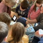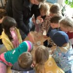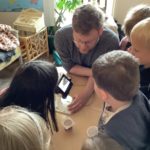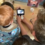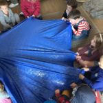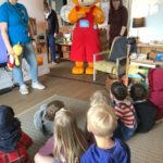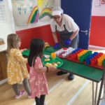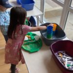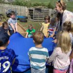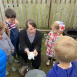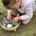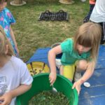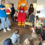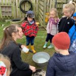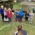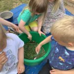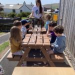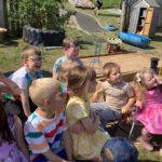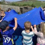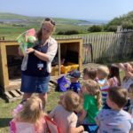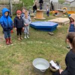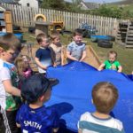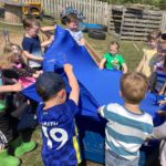 We took our bookbug session outdoors again this week.  The bairns used the stretchy fabric during a rendition of Grand Old Duke of York, listening to the words to move the fabric.  The story this week was Wendy the Widemouthed Frog which used a puppet and followed Wendy’s journey through the jungle.