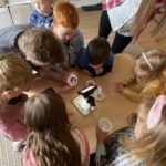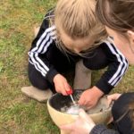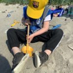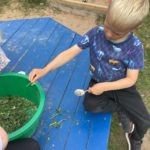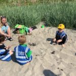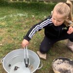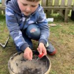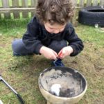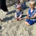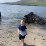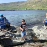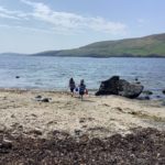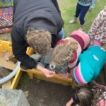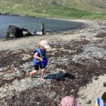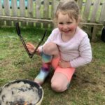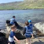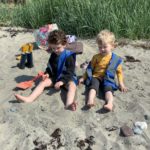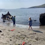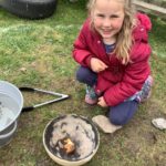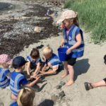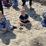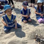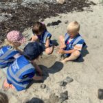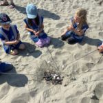 The bairns have been engaged in beach role play in the sand pit so we decided to take a trip to the Mail beach.  We walked down from nursery, checking out the vehicles driving past on the way.  We spotted an orange car, a truck with a  boat on the back and a three-wheeled motorbike.  Once we arrived at the beach we agreed on where was safe to explore.  Many of the bairns took off their socks and shoes, paddled at the water’s edge, dug for treasure and climbed on the rocks.  We made a safety circle for the fire pit and toasted marshmallows.  We have been discussing sun safety including finding shade, keeping hydrated, wearing a sun hat and putting on sun cream.  Before our trip to the beach, the bairns suggested taking ice-pops to help us stay hydrated.