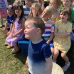 We made our way to the sunny multicourt for this year’s sports day.  The bairns took part in many races – sprinting, egg and spoon, sack race and a relay with the Primary 1/2 class.  It was great to see parents joining in for the three-legged race with some interesting techniques!  We also walked to the sports field in the afternoon to watch the older bairn’s take part in their sports day.  Well done to all the bairns for taking part and showing team spirit.