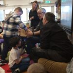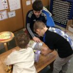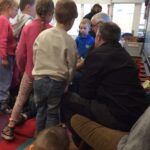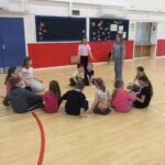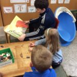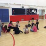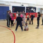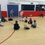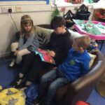 Primary 6 led some games and activities for the Primary 2 in the hall and Primary 1 were treated to Primary 5 reading to them in small groups.