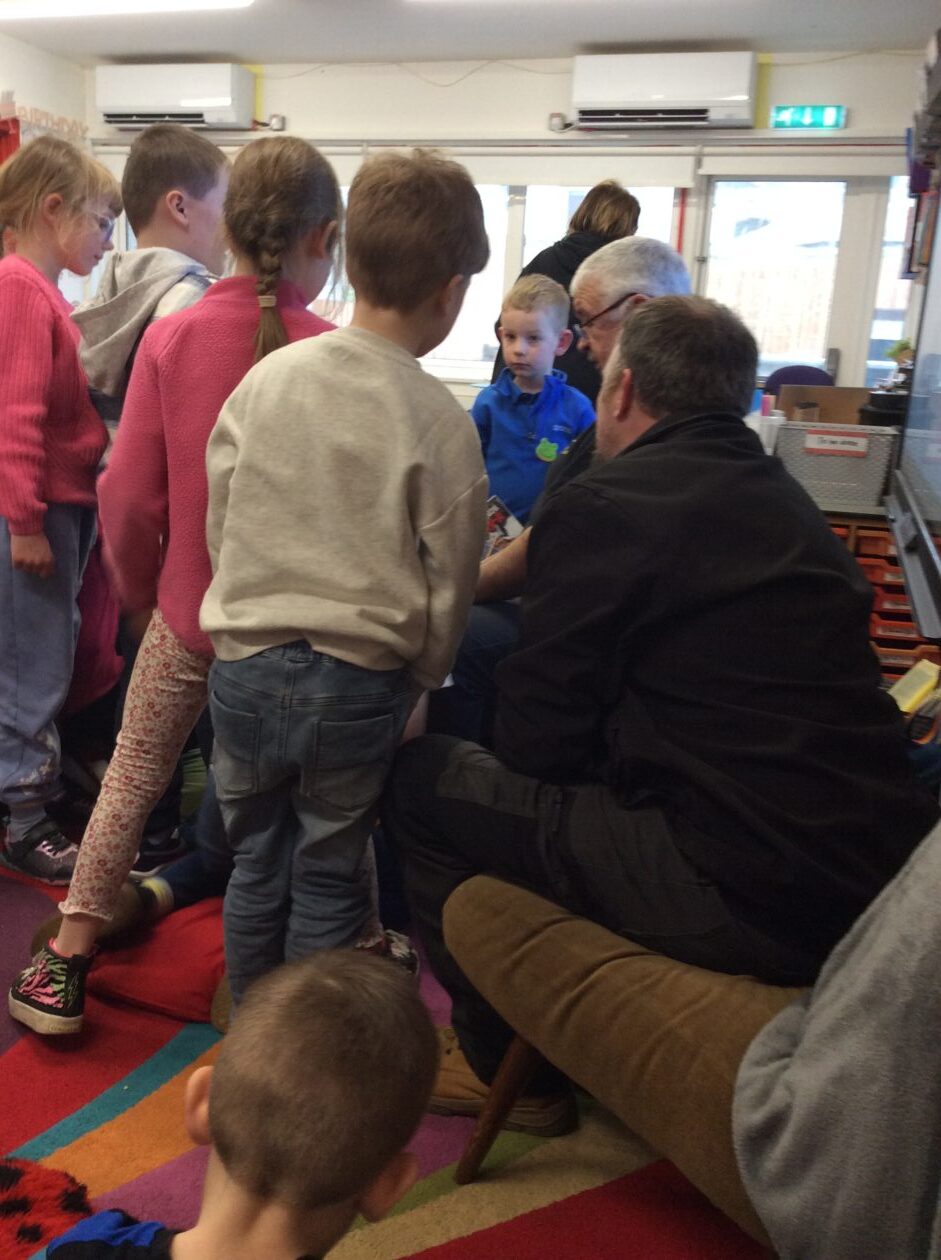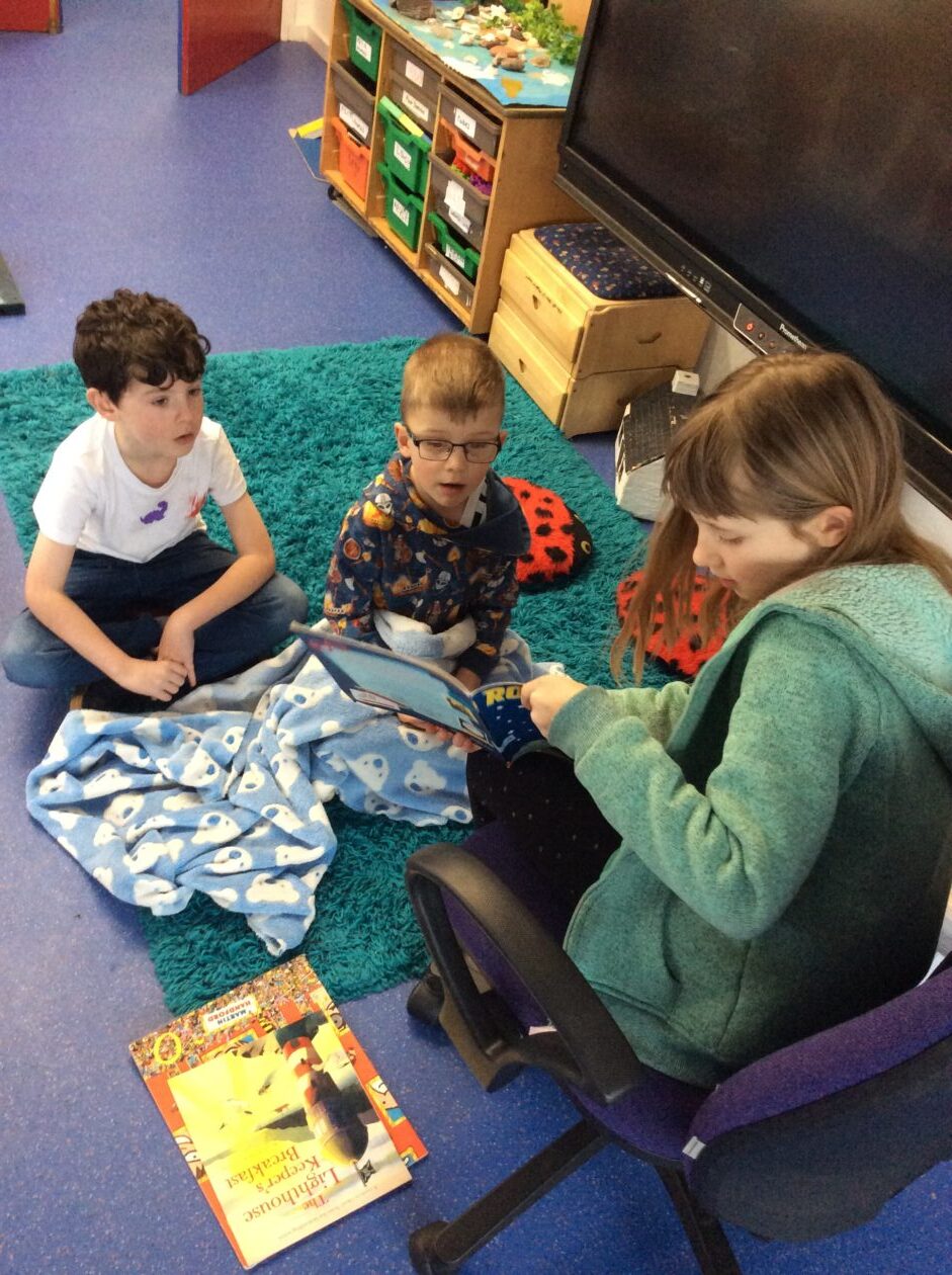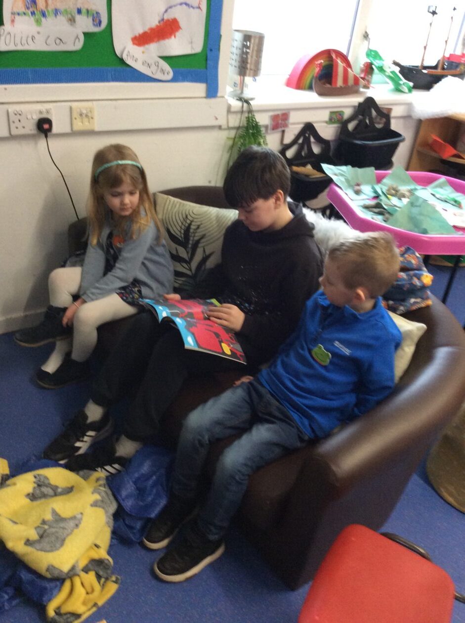 We were delighted to have Sean along this week to read to the bairns in wir reading nook. The bairns chose to listen to Sean in their child initiated play time… he was very popular!