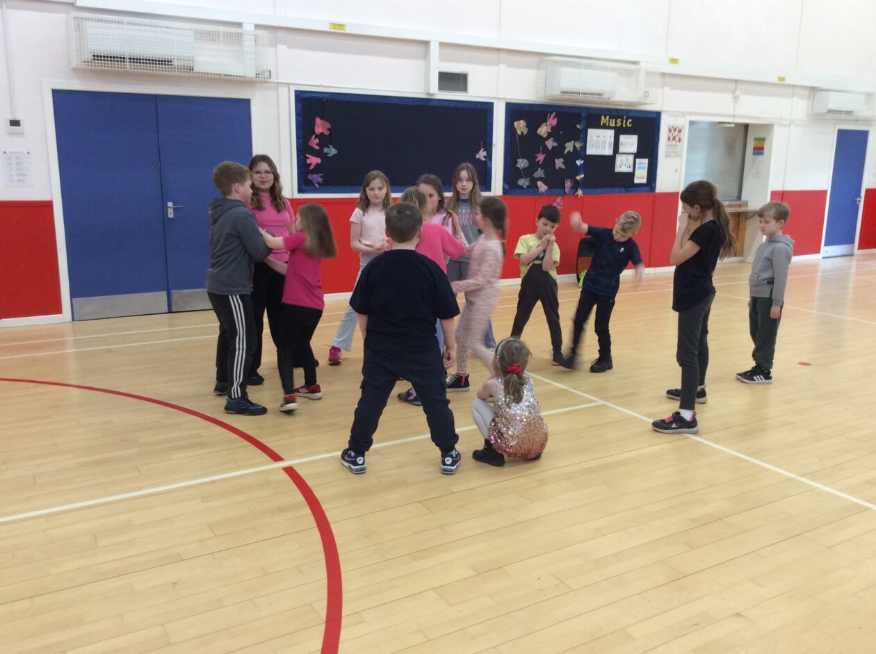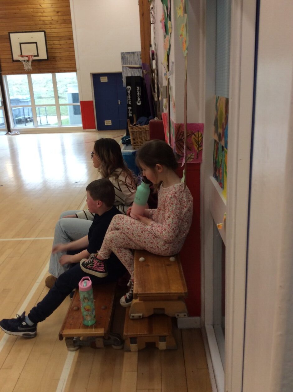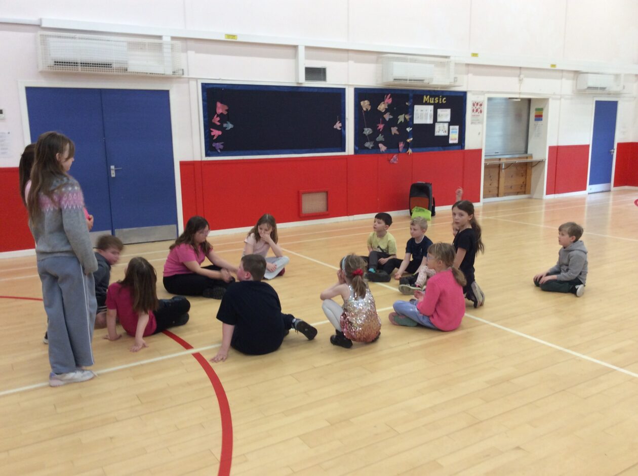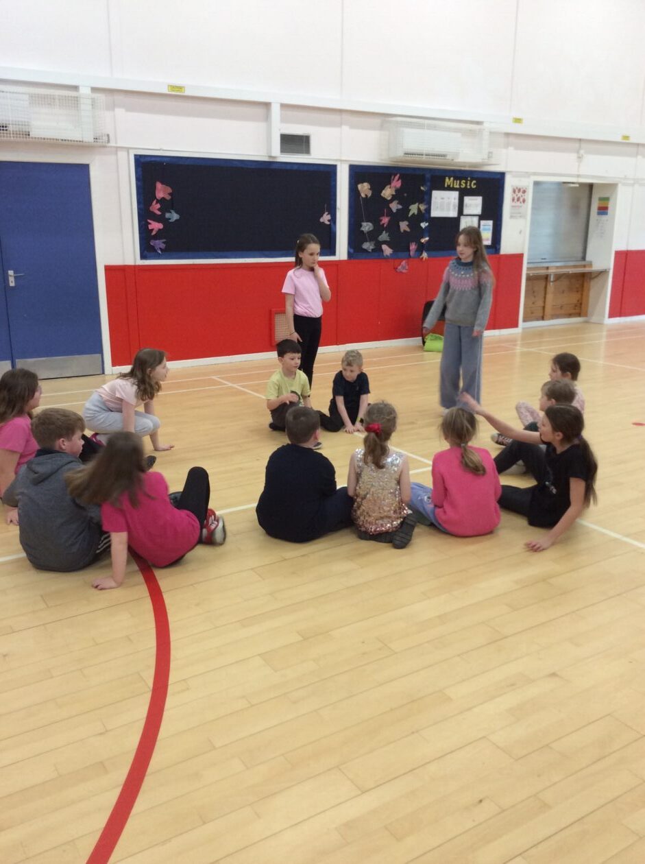 Primary 6 led some games and activities for the Primary 2 in the hall and Primary 1 were treated to Primary 5 reading to them in small groups.