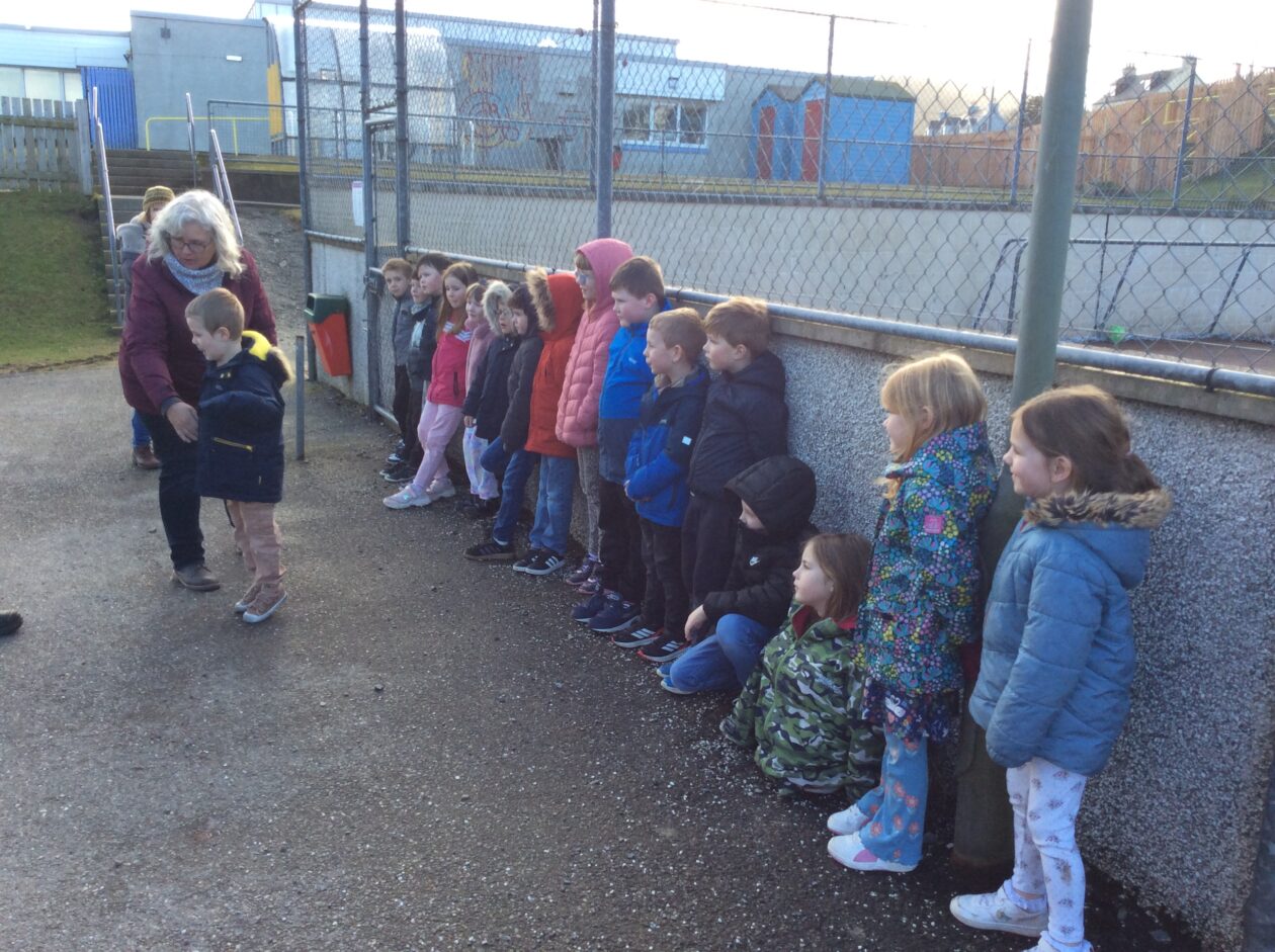 The lovely Mrs Bannister had the bairns outside this afternoon. The sun was out but it was bitterly cold, but we had lots of fun! Thanks, Mrs Bannister.