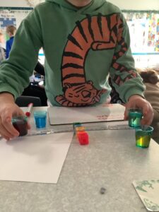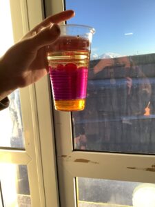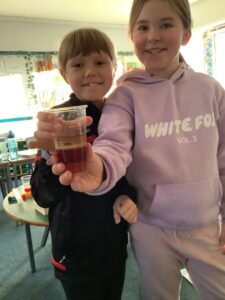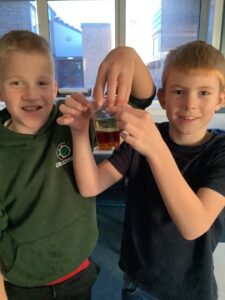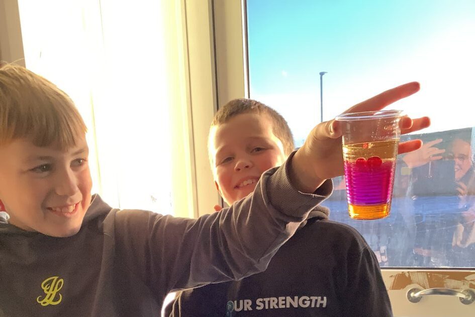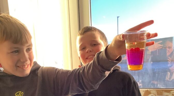 In P5/6 this term we are looking at science and how water and other liquids have different states and how they can mix and change states. We learned about density this week, and why things float or sink. we measured the density of 4 different liquids: honey, oil, salt water and fresh water, and with our findings we could then create a layered liquid cake showing the different densities of the liquids.