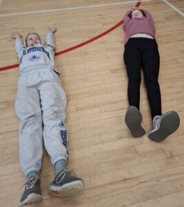 On Wednesday in Week 2 of Term 4, we managed to get outside lots with the lovely weather. We did our maths lesson outside and practiced some different skills we’ve learned over the year. We first played a game called “Decimals War” on whiteboards which helps us with place value. This is something we do inside too. Then we learned a game called “Nim” which comes from ancient China. We had to collect 20 pebbles in pairs and pick up 1, 2 or 3 pebbles in turns, aiming not to be the person to pick up the last pebble. There was a strategy to it which was quite tricky to figure out. This was focused on problem solving. Then we did a game with bean bags and hoops which focused on adding and multiplying. Finally, we did a relay race in two teams where we had to answer a multiplication question in order to be able to run back and hand over to the next person in our team. Hopefully the nice weather continues and we can keep getting outside!