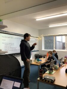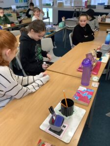 Next, we tied a knot in the thread so it didn’t all pull through. It was hard for a lot of people to tie the knot but we managed fine. Eventually we sewed the button onto the poppy and it all got held together.