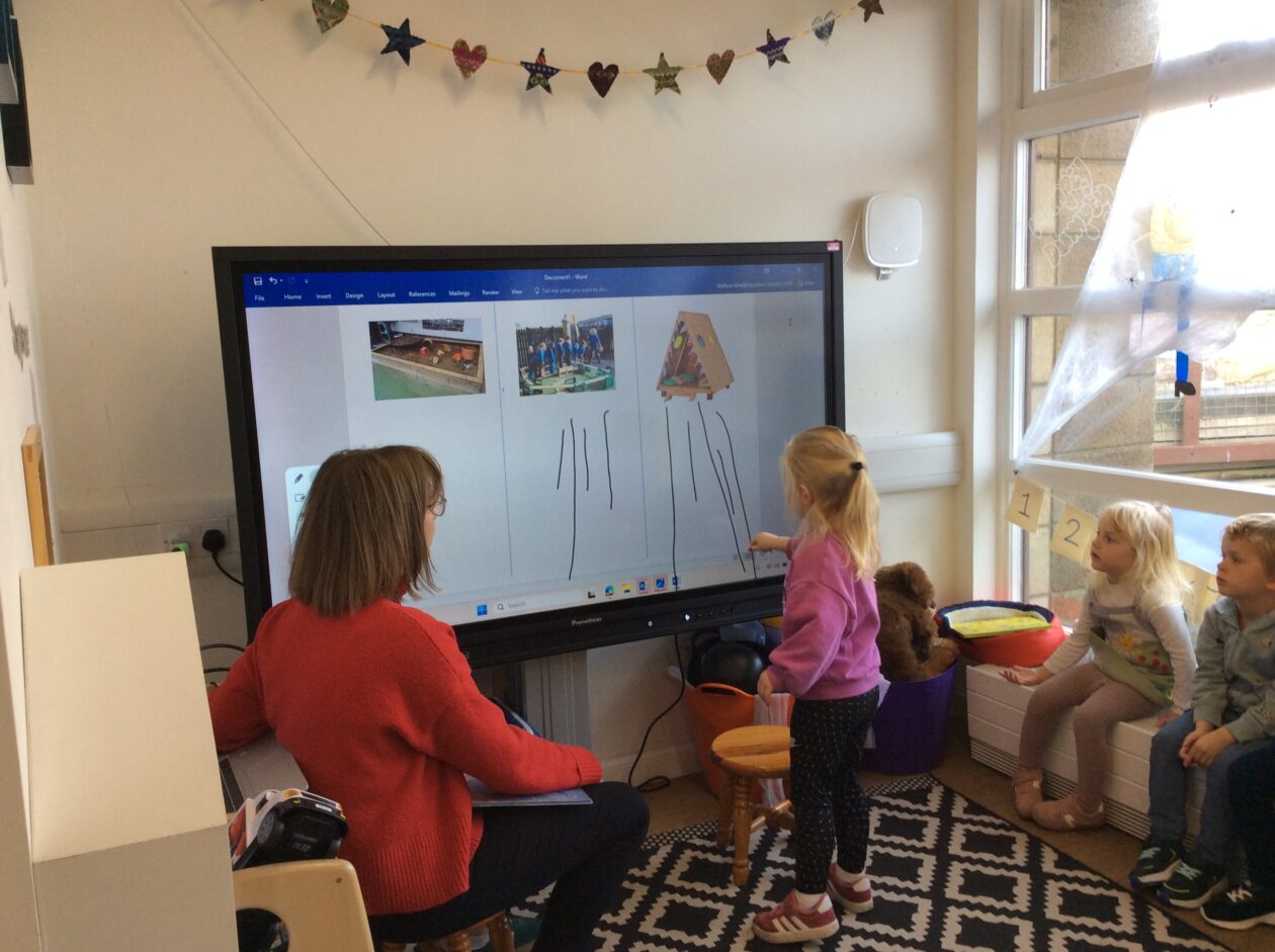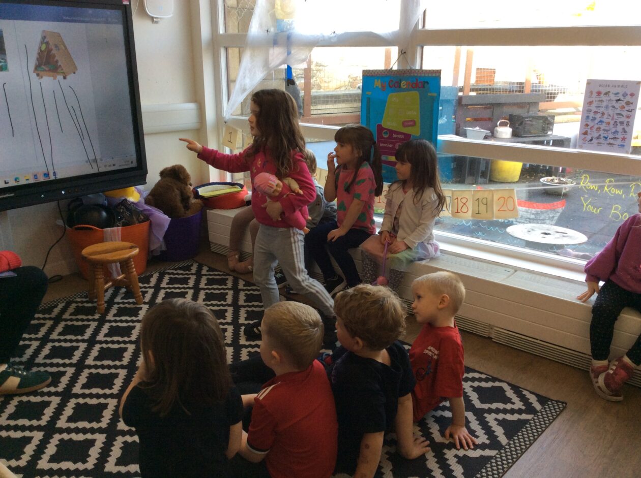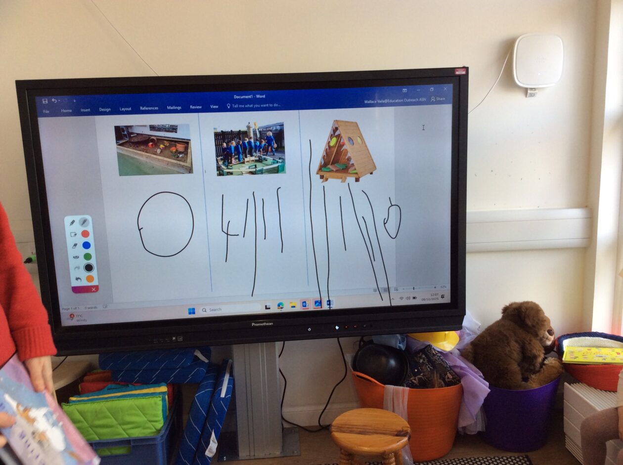 Last week we started to ask the children about what things they would like to see in their outside play space. We talked a bit more about this today and tried to narrow down our choices. The children then each had a chance to vote for which thing they would most like to see in the playground. After we all made our tally mark, the children helped count up the votes and see which one had the biggest number. Our winning choice was to get a new den.