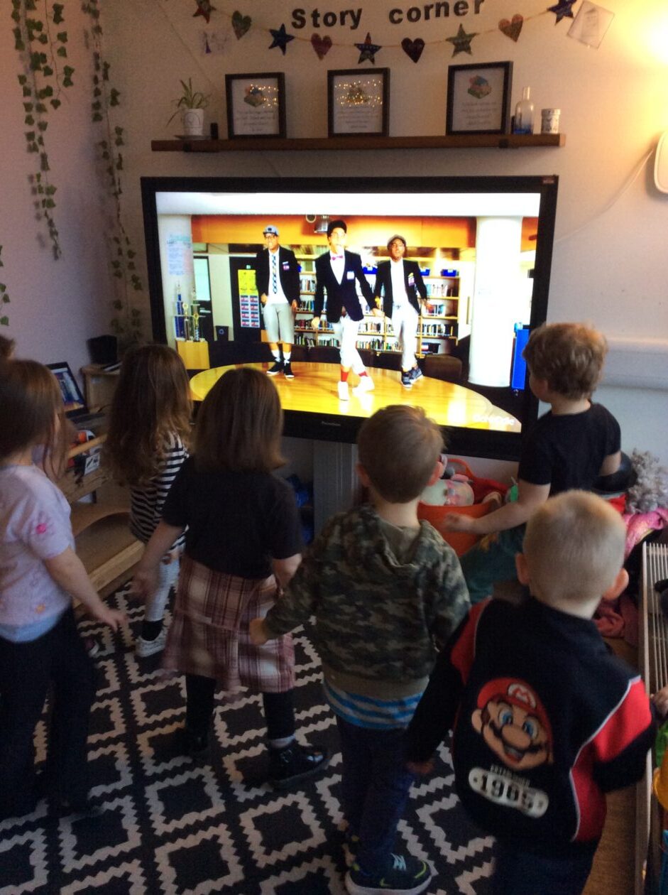 Later on, we added a musical twist to pattern making and watched a very funny song called “Banana, meatballs”. We had to listen closely to the words and copy the movement patterns. It was lots of fun.