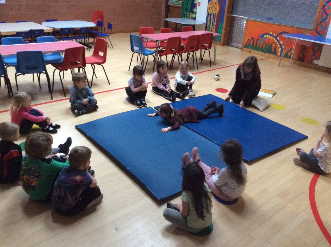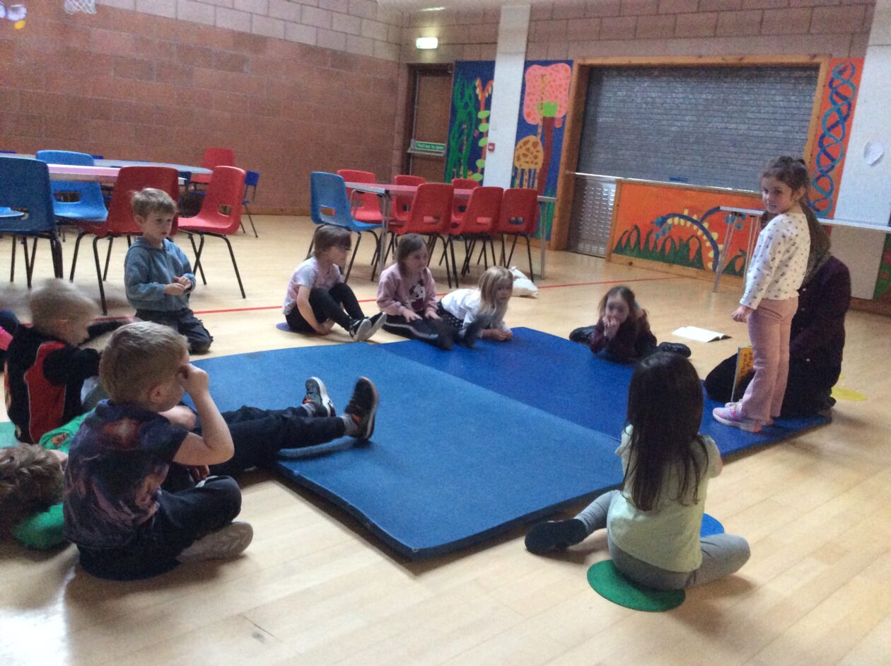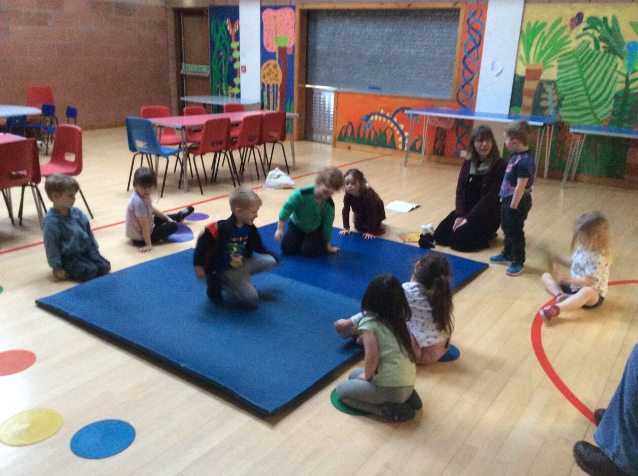 We then moved on to a familiar story, The three little pigs, where we all had a chance to play a part and together we acted out the story. We all had lots of fun and after this some of the children were keen to share stories of their own. One child wanted to retell their story of Goldilocks and the Three Bears, followed by a completely original story all about wrestling.