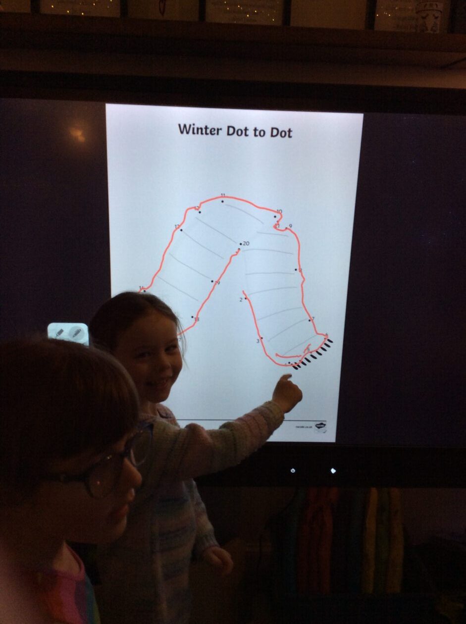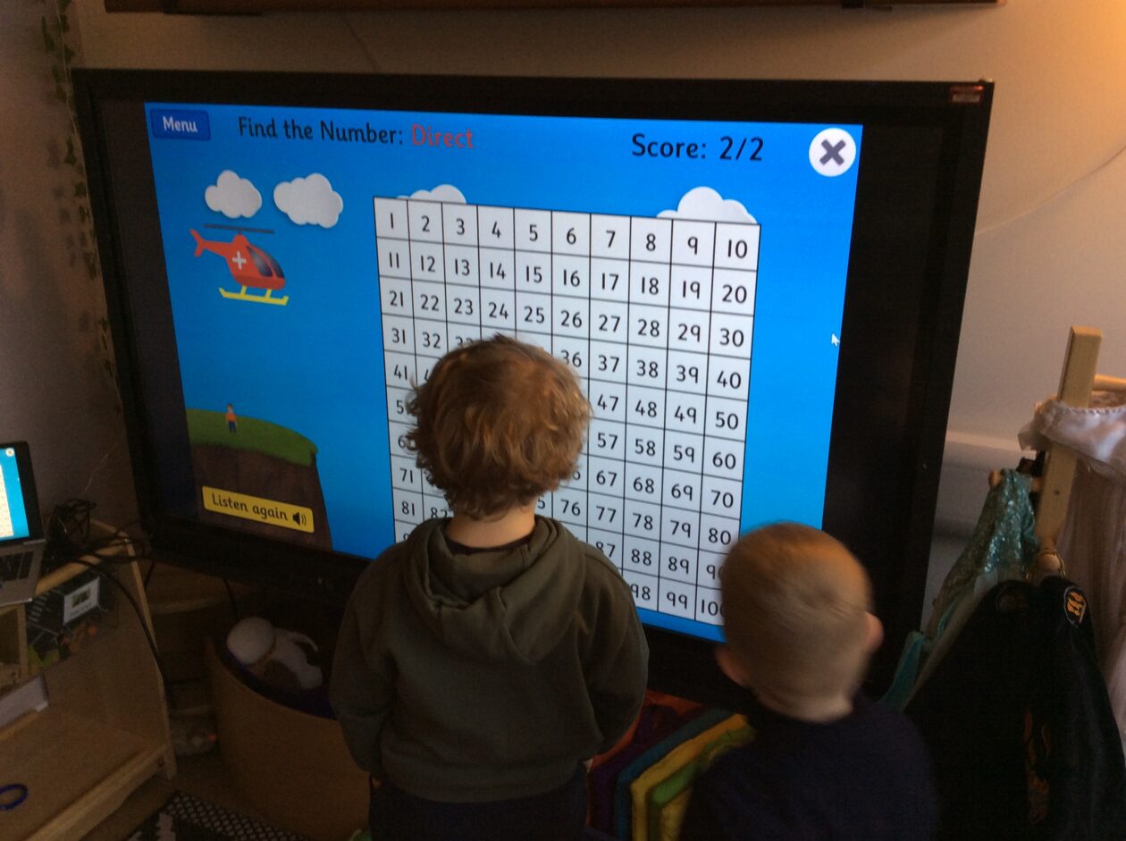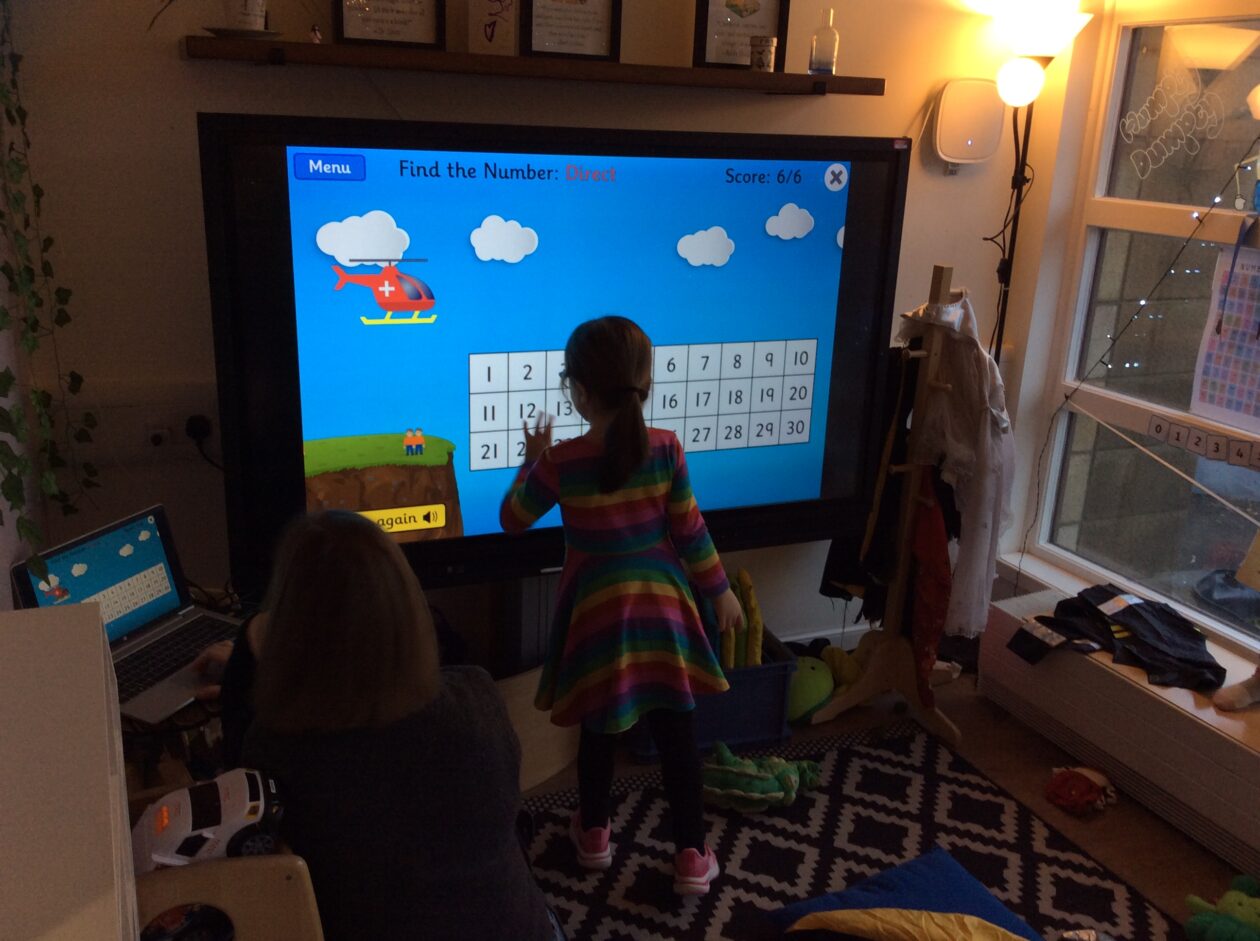 The interest in numbers has continued today. We had some number fun on the whiteboard with some dot to dots and finding number games. Some of the children really challenged themselves looking for numbers up to 100.