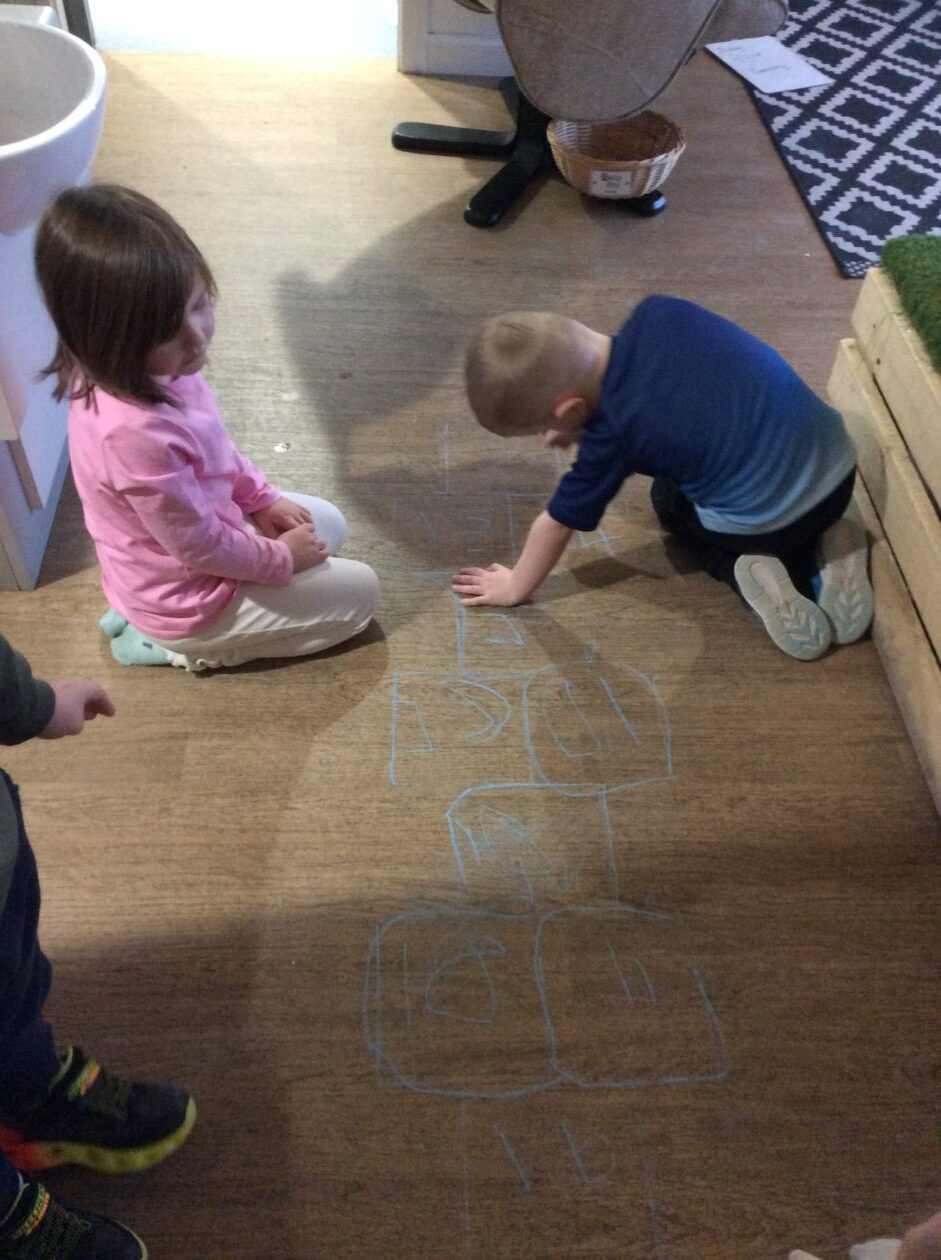 After lunch we all helped make a hop-scotch on the floor and added on the numbers. The children then tried jumping to see what number they could land on.