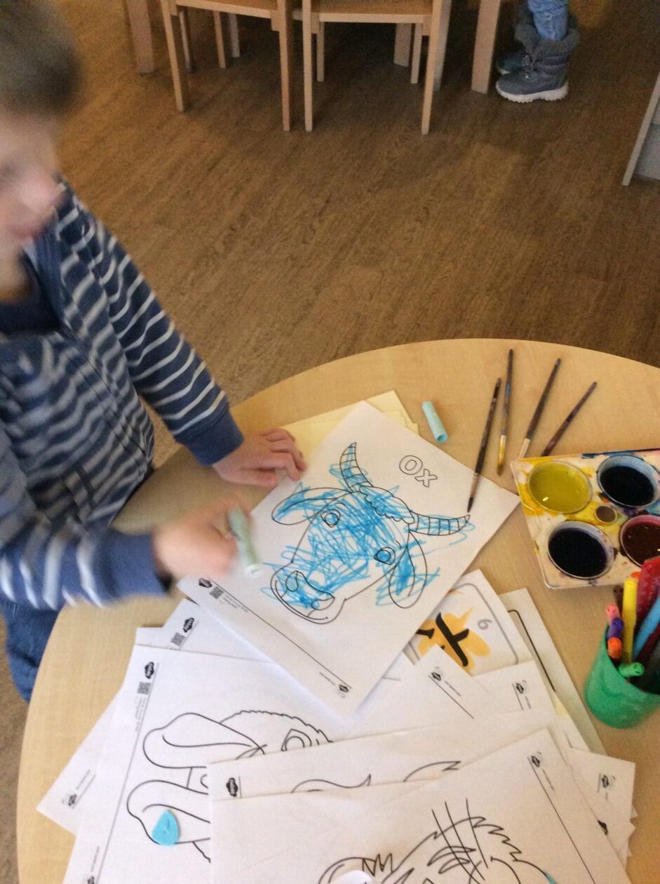 One of the children brought in some of the things they had been doing at home for Chinese New Year to share with all their friends.  Everyone was very interested and keen to get involved.  One of the things they brought in was some puppets that they had made of the different Chinese New Year animals, so we brought down the puppet show.  This then inspired some of the other children who wanted to make their own puppets and masks.