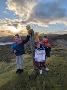 Today was, quite simply, an epic day. Children in Need is a charity that Fair Isle has been proud to support for many years, especially the Radio Shetland fundraising appeal. We don’t do things “by halves” here at our peerie school so, to raise as much money as we could, we planned a “Lighthouse to Lighthouse Ramble” from one end of our island to the other. This is (wait for it) 4.1 miles! We invited members of our community to join us and our Pudsey teddies joined in too.