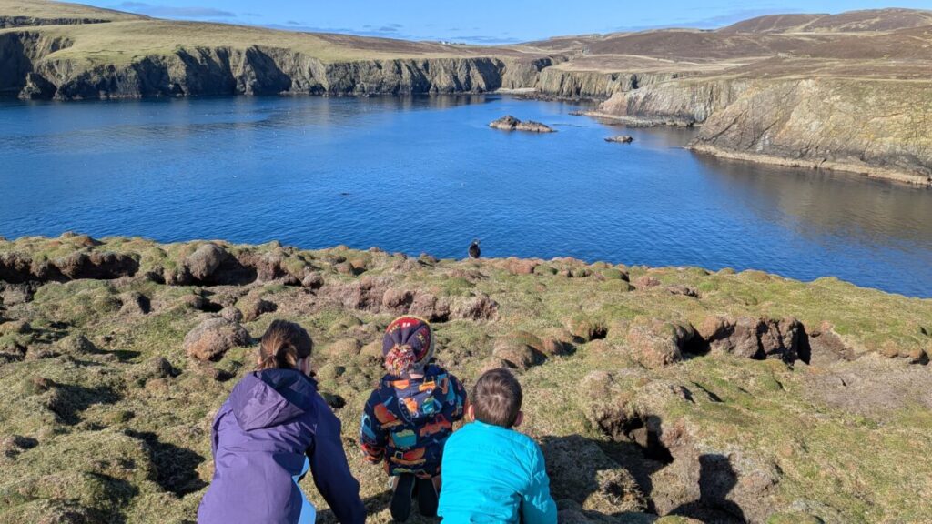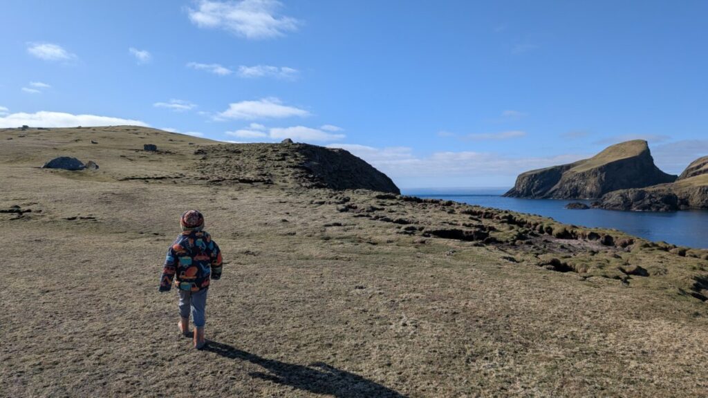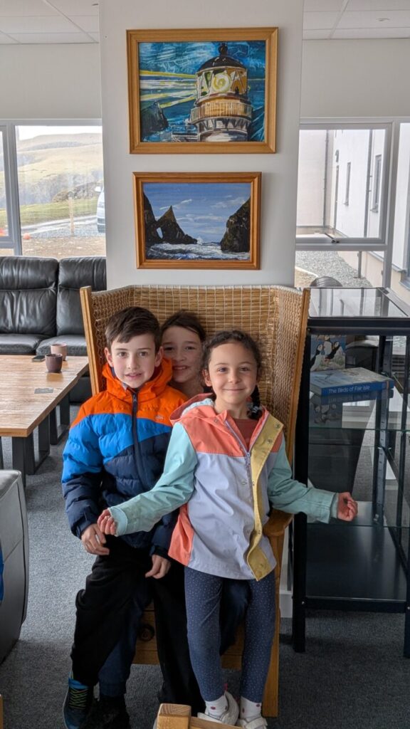 After keeping our eyes on flight radar, it was time to head to the airfield, wave goodbye to our parents and leave Fair Isle behind us. Touching down at Tingwall after an exceptionally bumpy flight, we collected our hire car and dropped our suitcases off at the halls of residence. We then wandered into Lerwick for some retail therapy. This included exchanging our World Book Day tokens at the bookshop, spending our pocket money at Harry’s Deparment Store and even being offered some free samples at Island Larder. There was time for a trip to one of Lerwick’s fabulous playparks where a P6 pal met us too. On the way back to the hostel, we stopped at the Clickimin running track for a 400m dash, earning our macaroni cheese that evening at the halls of residence. In the evening, we headed out to beautiful Hamnavoe for a playdate with our friends who used to live in Fair Isle. Those friendships are super important to us and we had a great time (thank you to Gillian and Tom for allowing us to invade you for the evening).