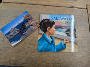 Firstly, you might remember seeing our fabulous artwork created with visiting resident artist Lori Deeley, where we made our own paint by grinding up different materials. Lori lives in Newfoundland in Canada and sent us the most beautiful book about her home, which also can be sung. It is about wanting to live by the sea in harmony with nature and not in a big city. So it is just perfect for Newfoundland as well as Fair Isle. Thank you Lori.