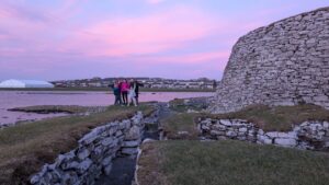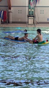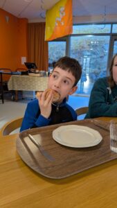 We were up and raring to go on the Thursday morning! This was going to be a busy day. After breakfast, we were kindly given a tour of the Anderson High School by deputy headteacher Mrs Jamieson. Again, gaining familiarity with our surroundings when we eventually make the step up to High School is invaluable to us. Also invaluable to all of us are our swimming lessons and that was where we headed next. A whole hour in the pool with different instructors meant we certainly earned those baguettes that the Halls of Residence supplied us with. We munched on them after driving out to Aith, on the west side of the mainland for a lesson at the climbing wall. Our instructor, Andy, was fantastic and made sure we tackled some hard climbs. Even Hollie and Jonathan made it all the way to the top after being challenged by our speedy gladiators. It was then time for a well-deserved hot chocolate in The Dowry with our Headteacher, Christie, who came to meet us from Sandwick. The marshmallows went down a treat. After a delicious evening meal of fish and chips and pizza at the Halls of Residence, we wandered around Clickimin Loch and Broch with two past pupils from Fair Isle who always take the time to come and see us when we venture out and it was lovely to see the children of Fair Isle (across the ages) reunited together.