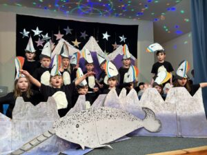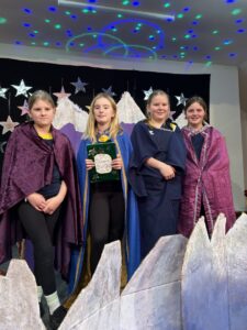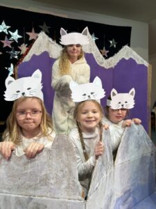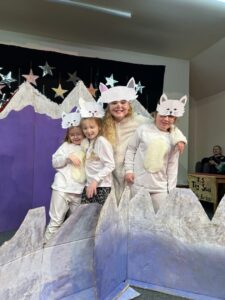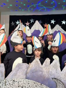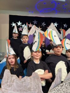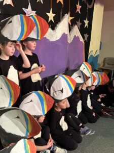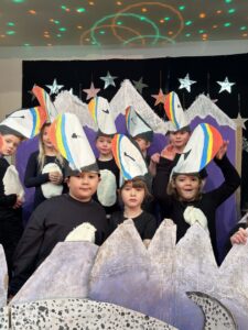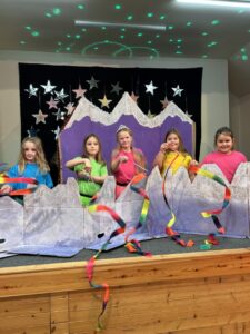 Aurora Borealis and her dancers help the children towards the North Pole.
